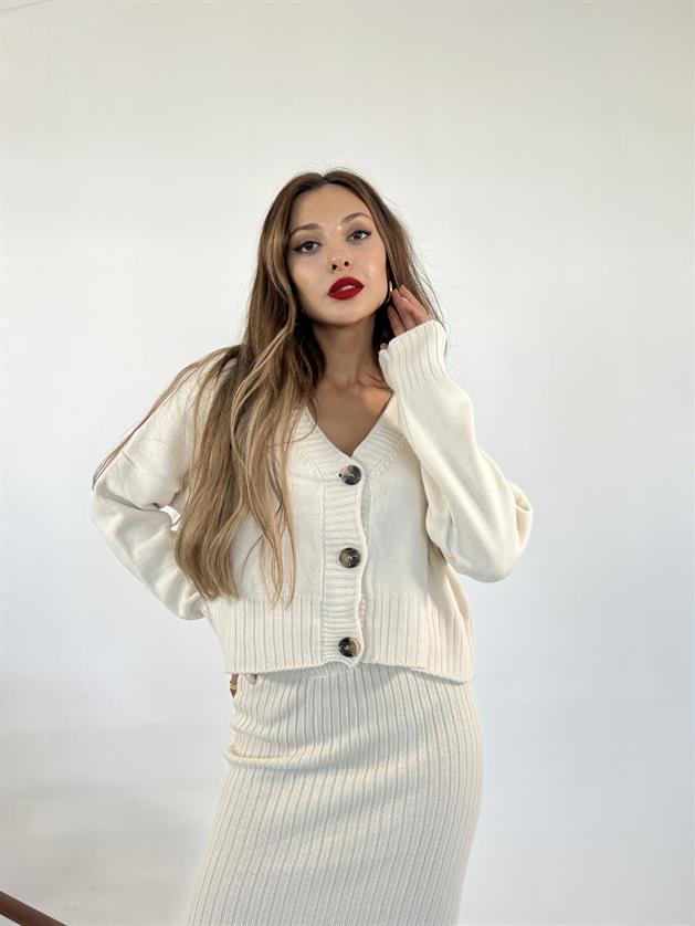 Diger340283100 DÜĞMELİ HIRKA ETEKLİ TAKIM-KREM