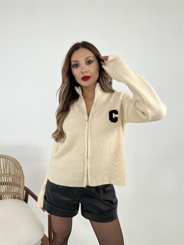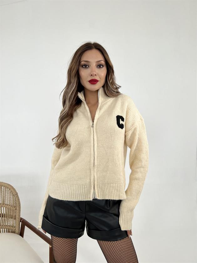 3907 TRİKO ŞARDONLU ARMALI HIRKA-KREM