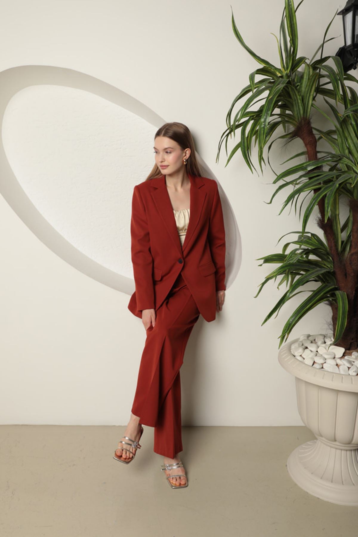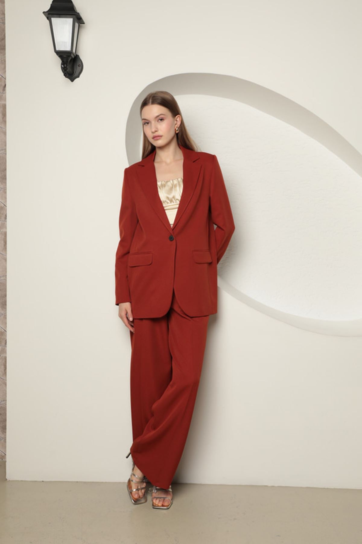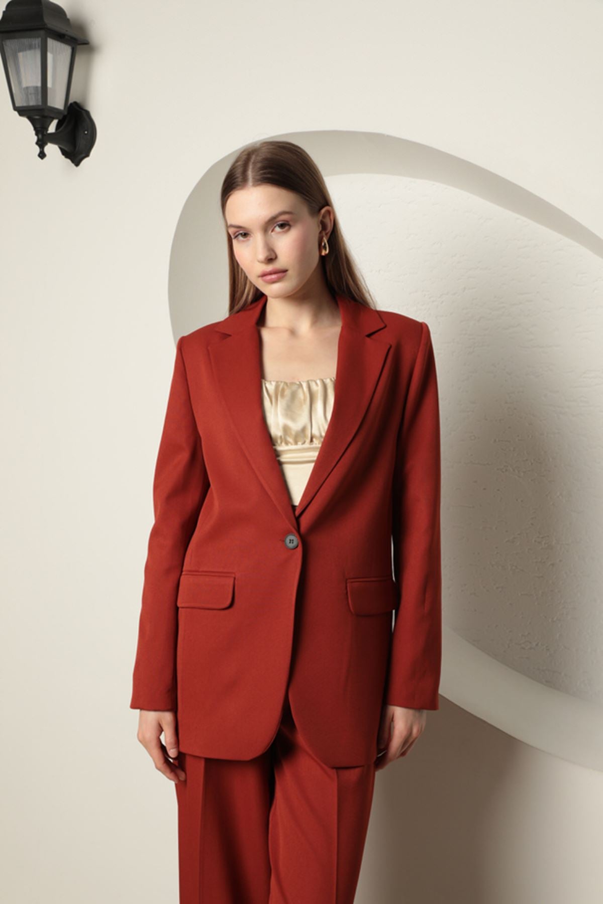 Atlas Kumaş Kadın Oversize Ceket-Kiremit