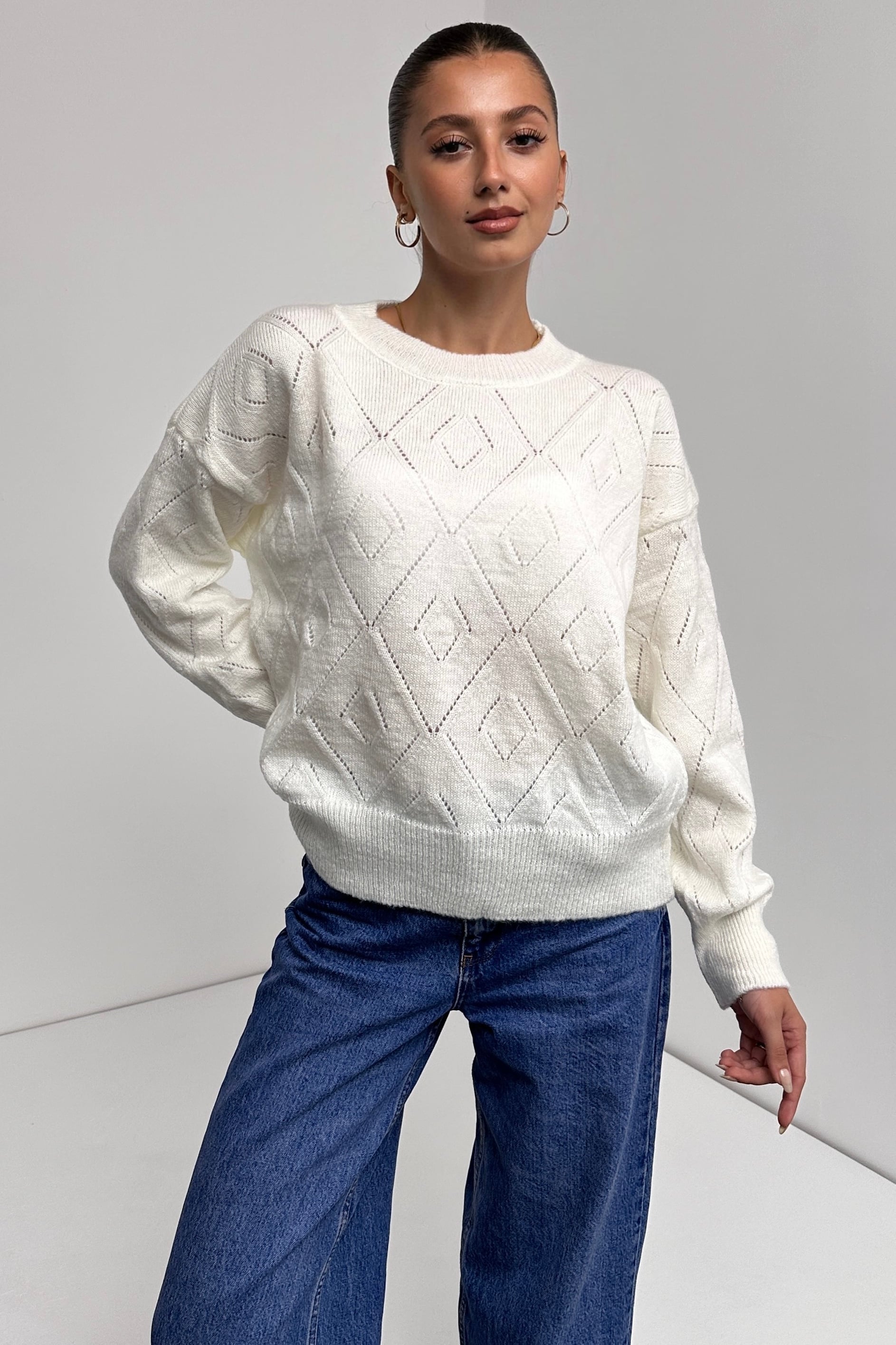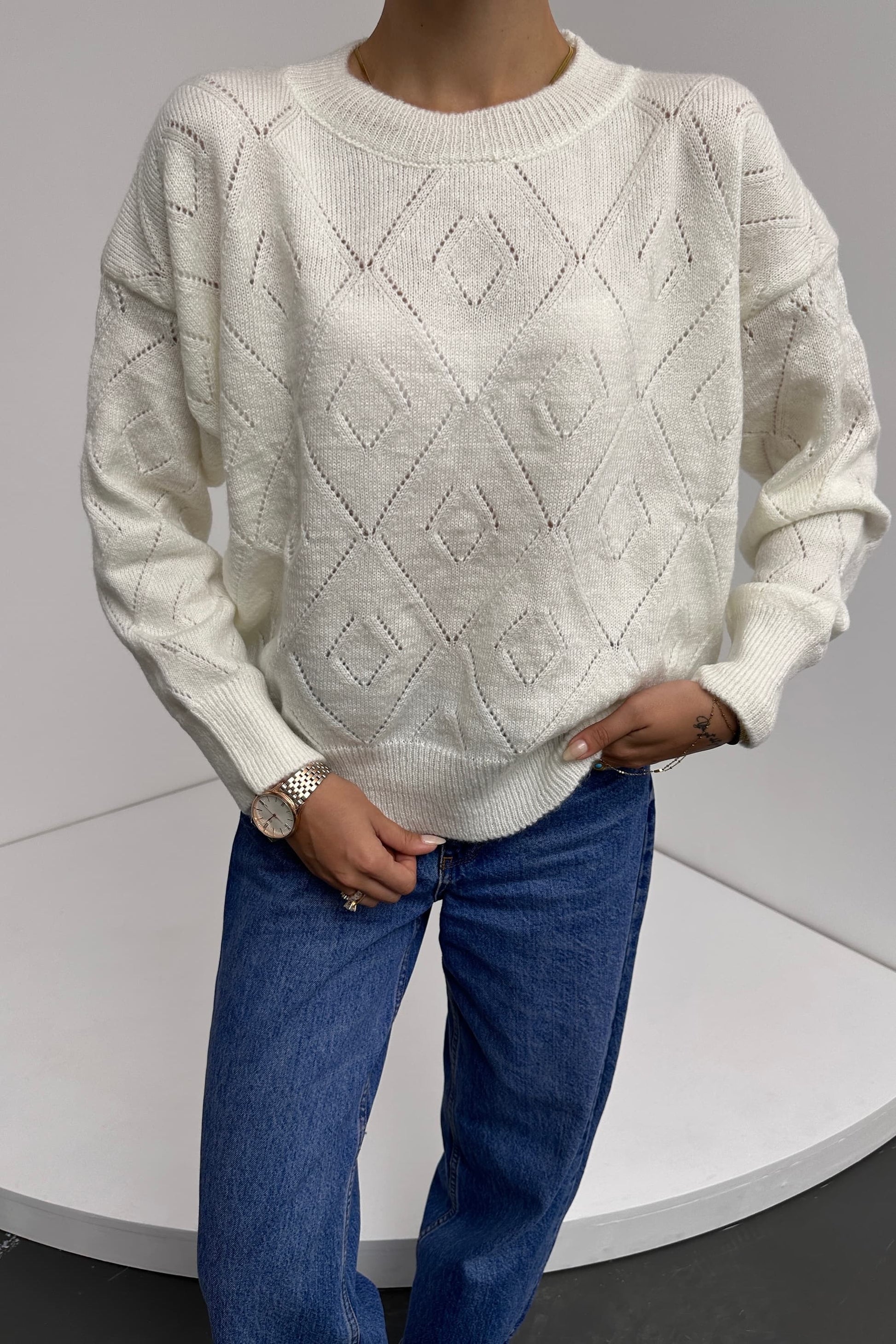 Bisiklet Yaka Baklava Desenli Triko Kazak
