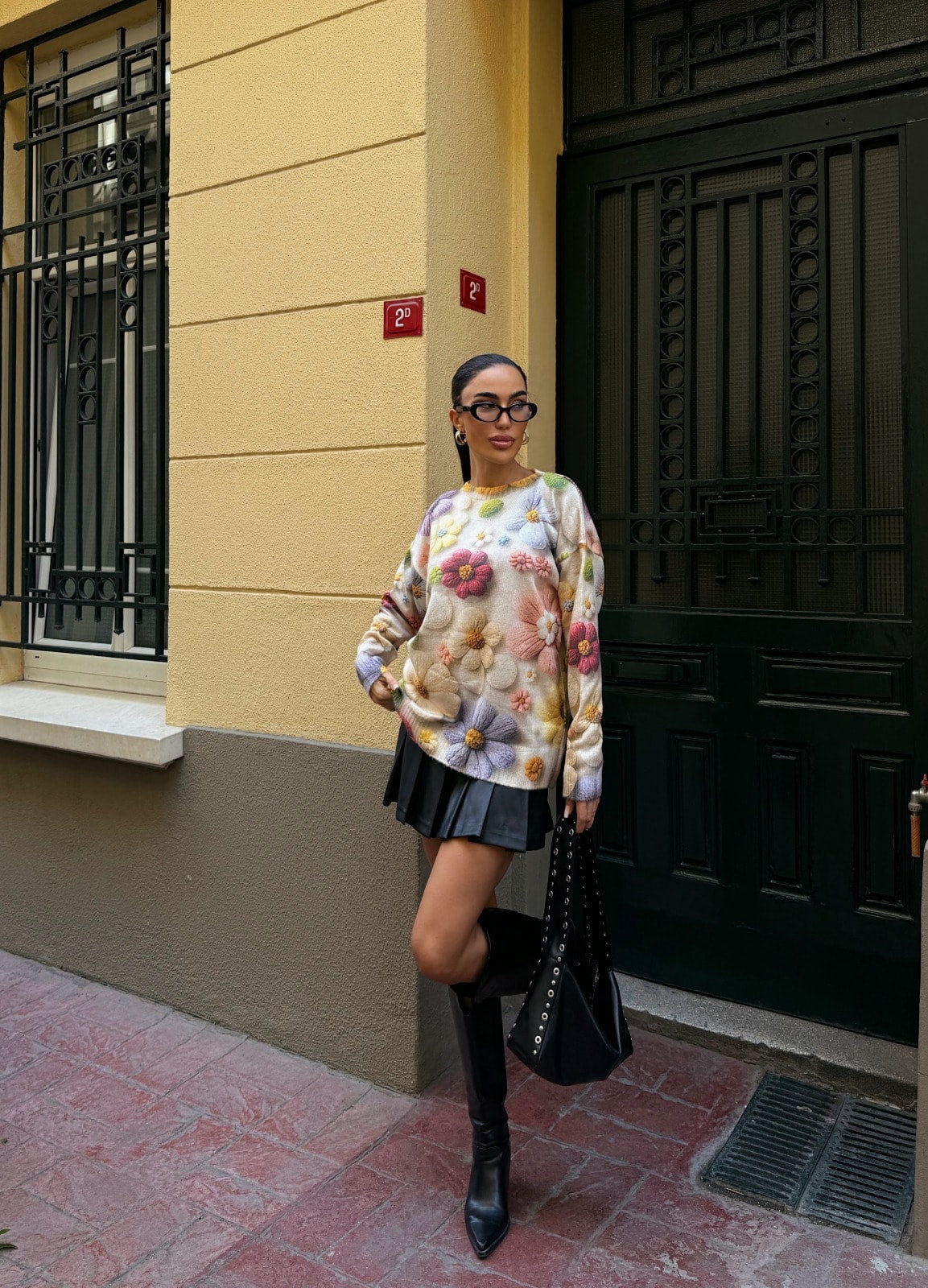 Diğer87786Bisiklet Yaka Desenli Triko Kazak