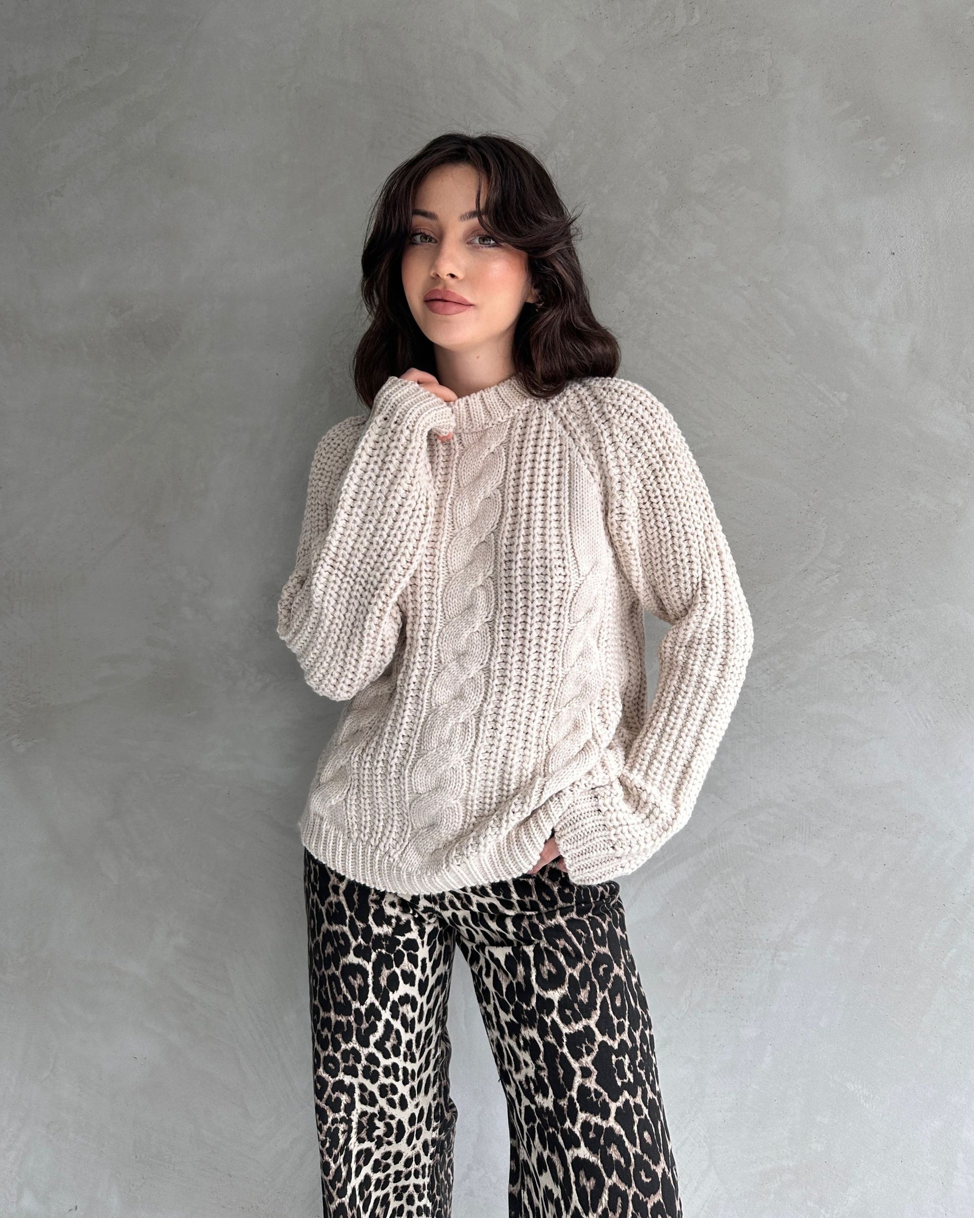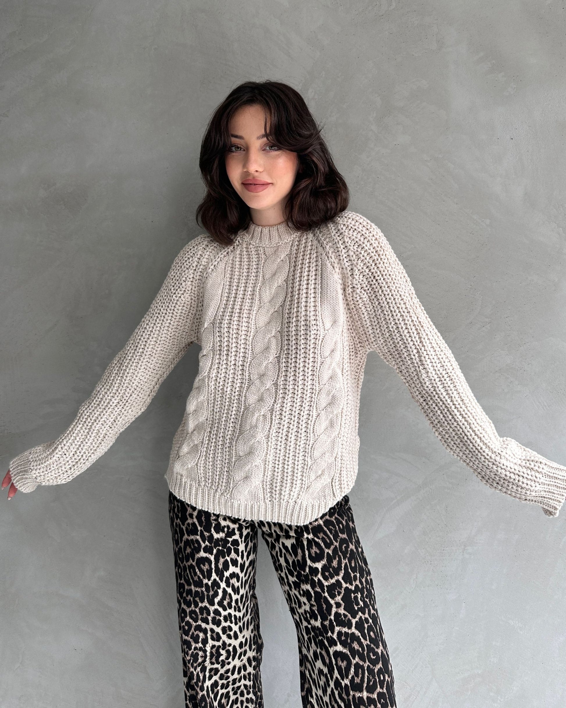 Diger82129Bisiklet Yaka Örgü Desenli Triko Kazak