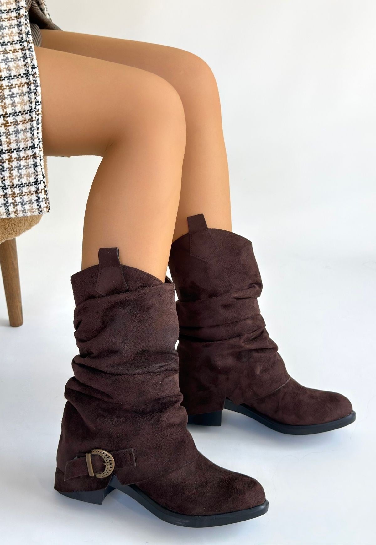 Canty Kahverengi Süet Körüklü Topuklu Çizme