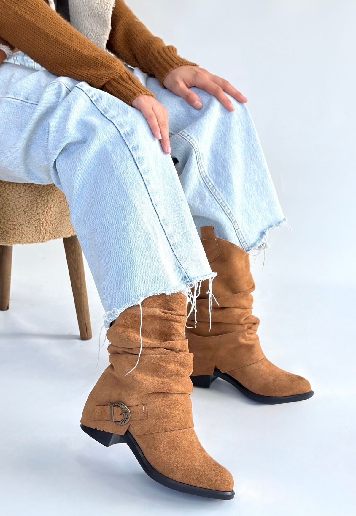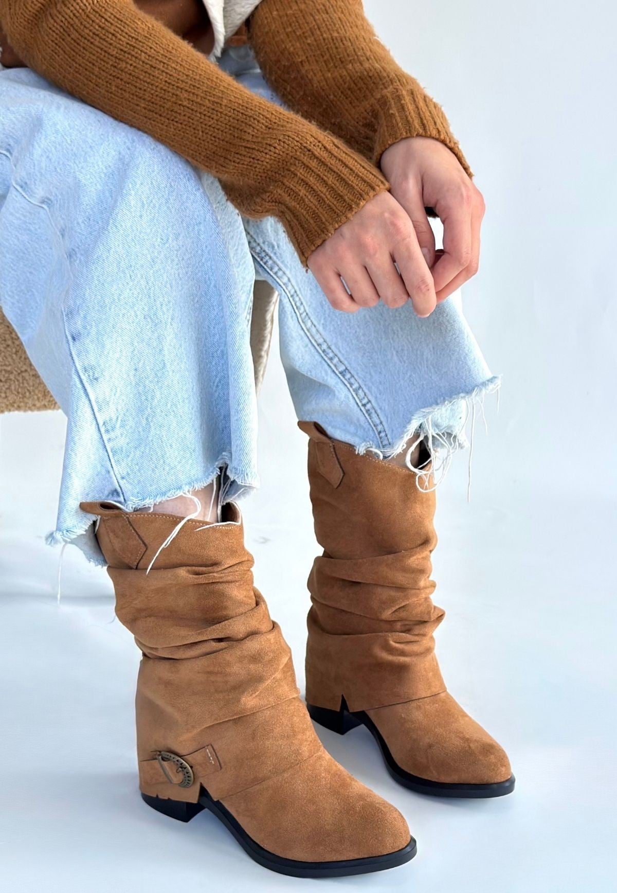Diğer88174Canty Taba Süet Körüklü Topuklu Çizme
