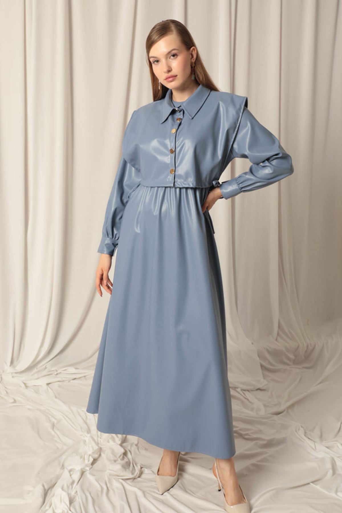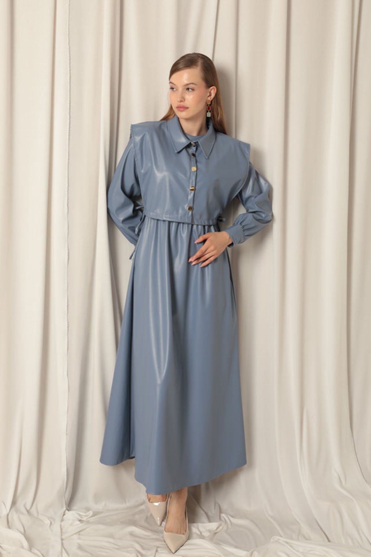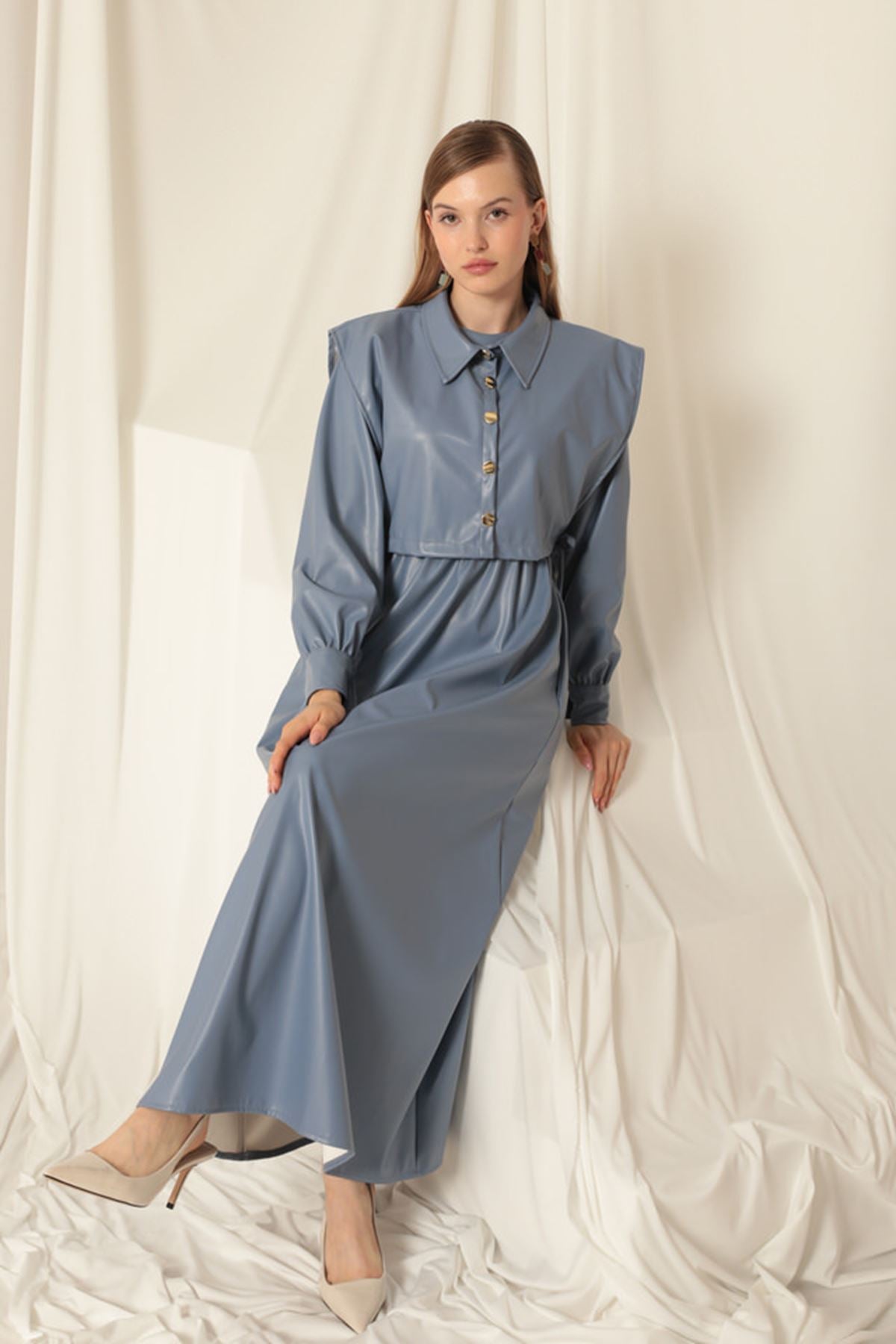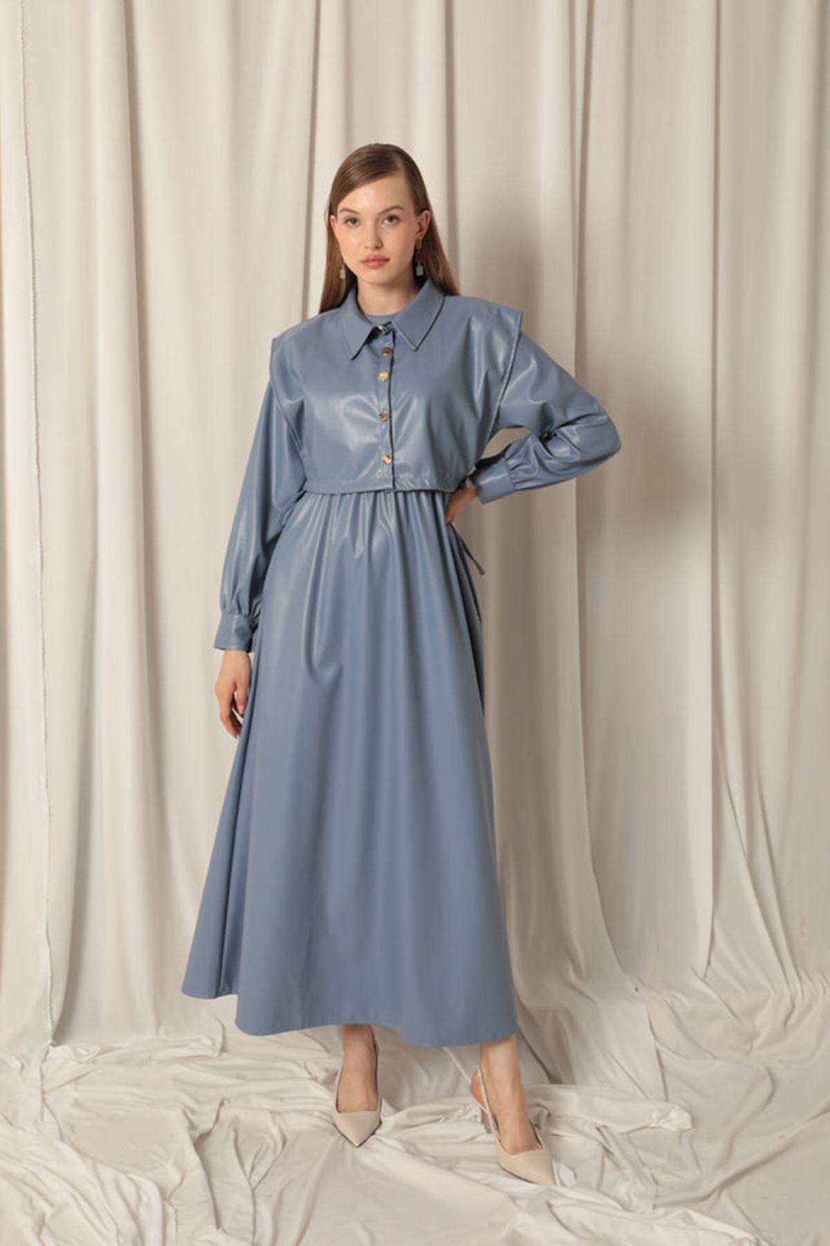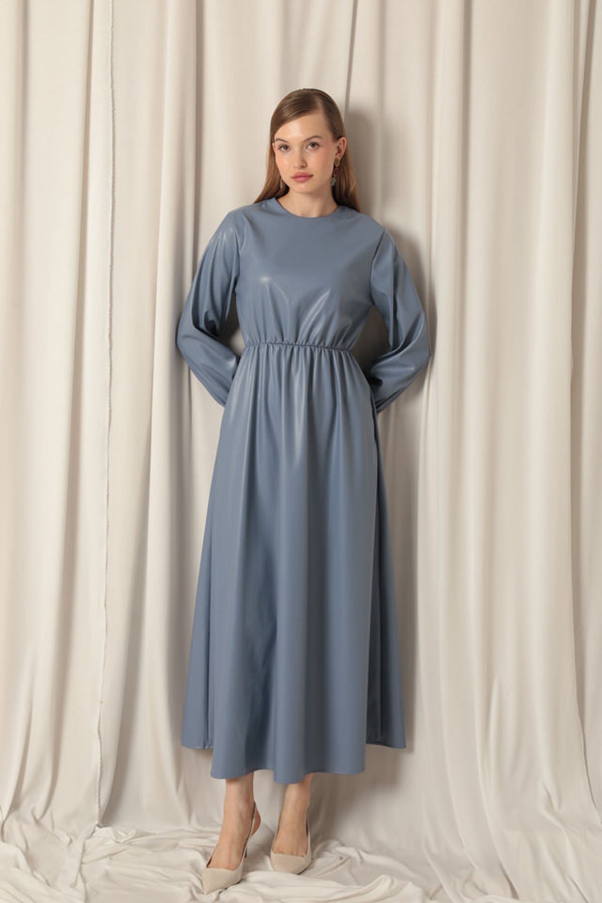 Diger65515Deri Kumaş Kadın İndigo Elbise