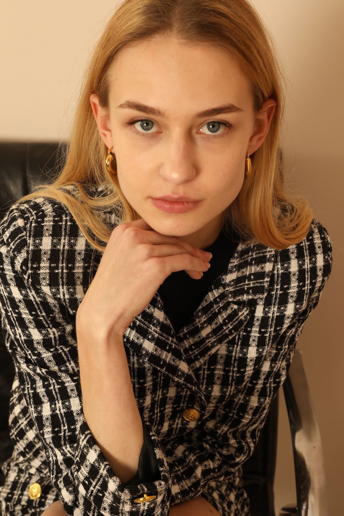 Dokuma Kumaş Ekose Kumaş Kadın Etek-Siyah
