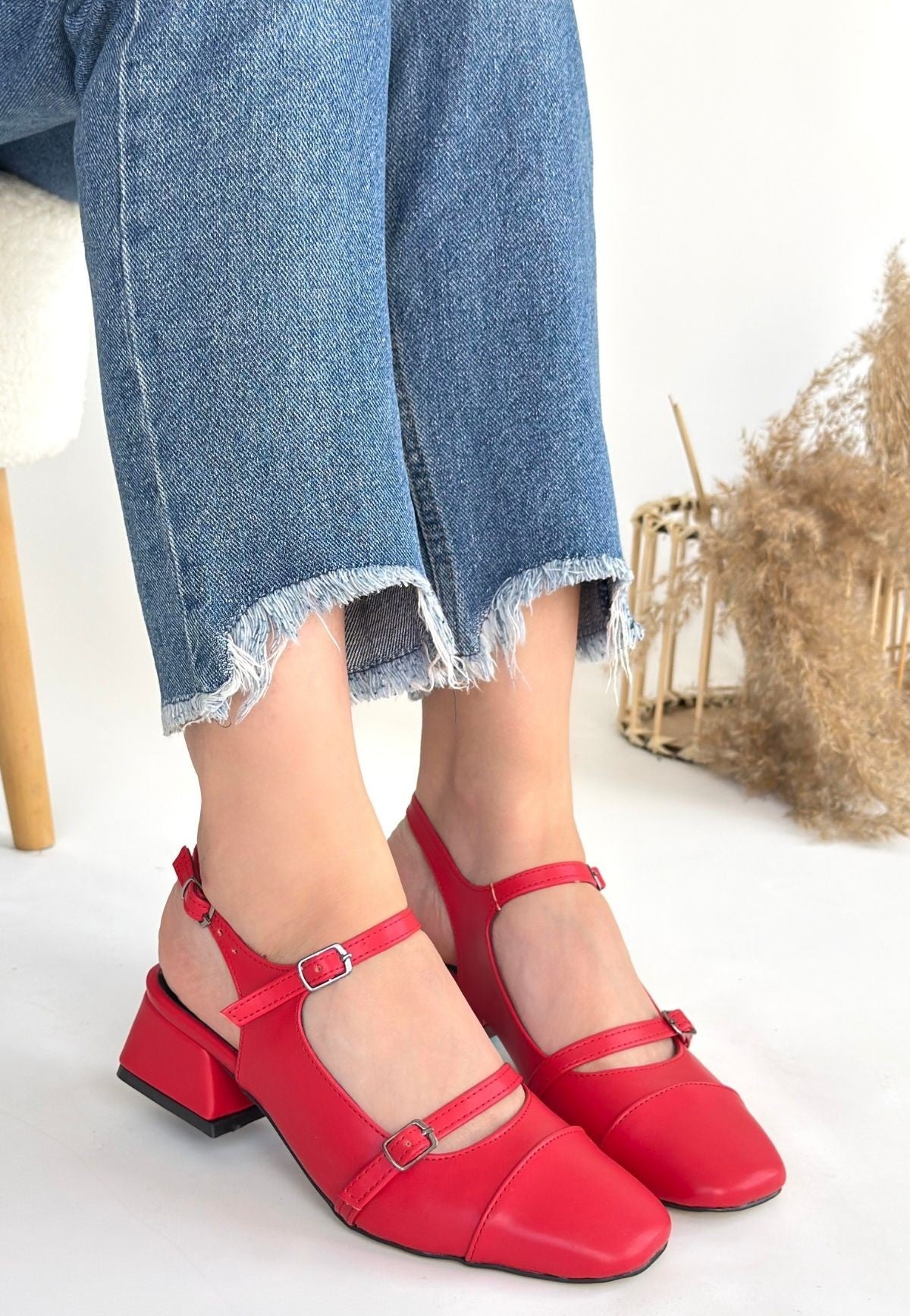 Doran Kırmızı Cilt Topuklu Ayakkabı