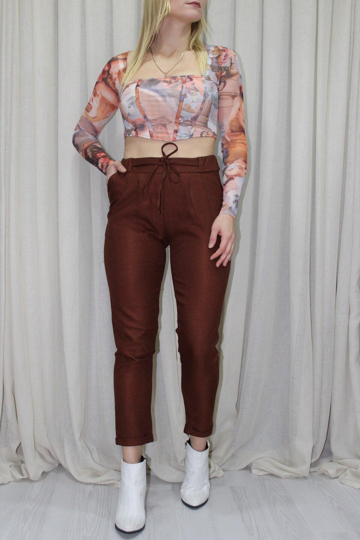 Duble Paça Yün Efekt Pantolon Taba - 1362