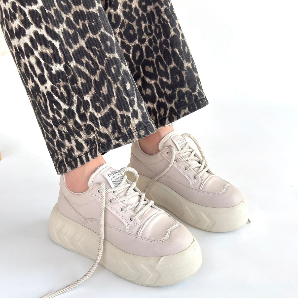 Emwa Bej Cilt Bağcıklı Spor Ayakkabı