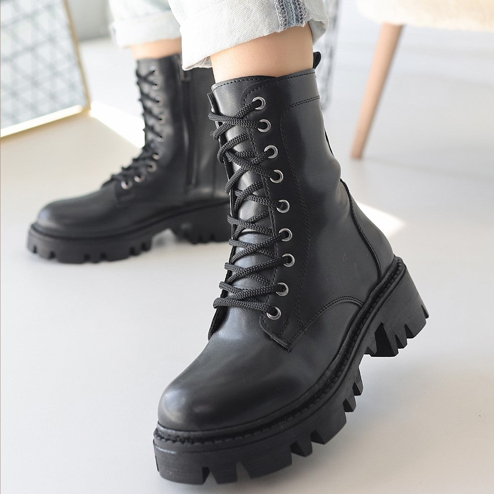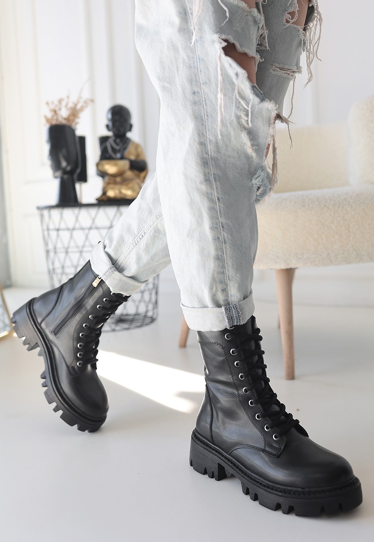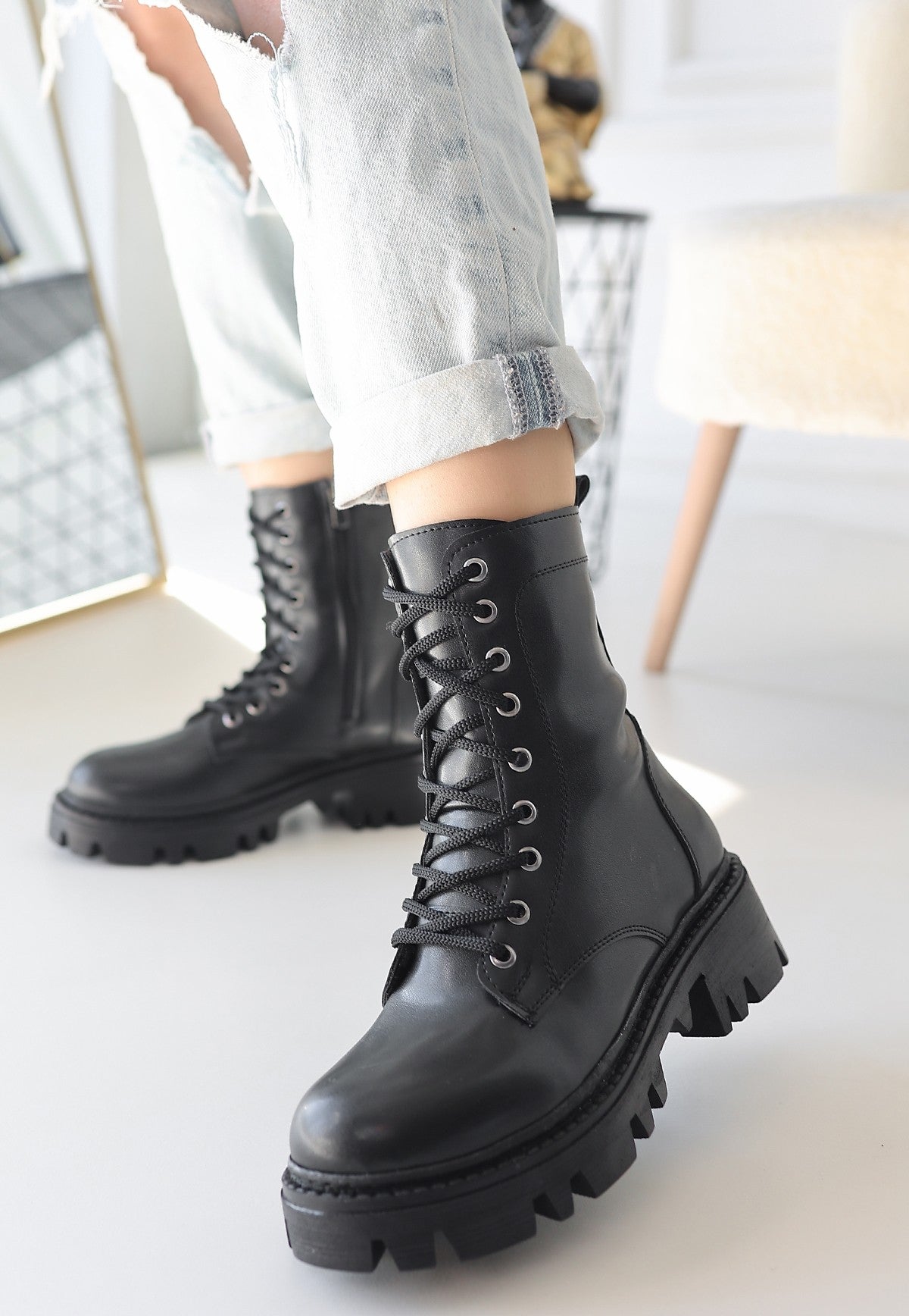 Diğer86575Flona Siyah Cilt Bağcıklı Bot