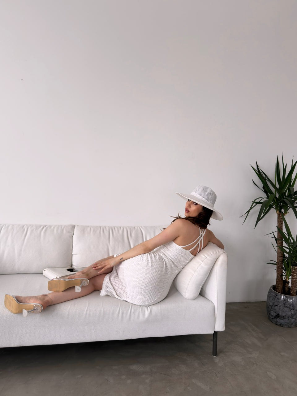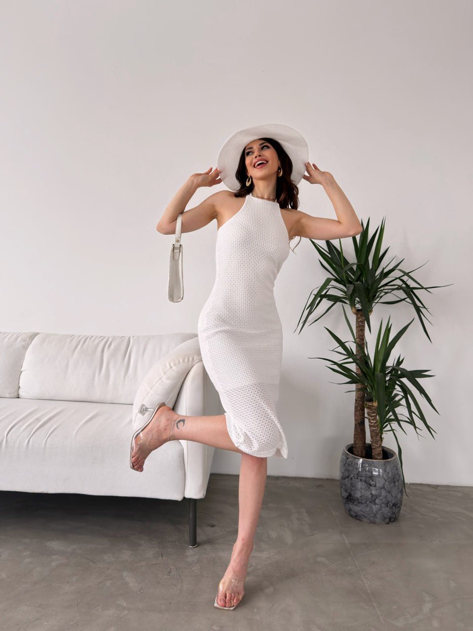Halter Yaka Sırtı Çapraz Bant Detaylı Triko Elbise