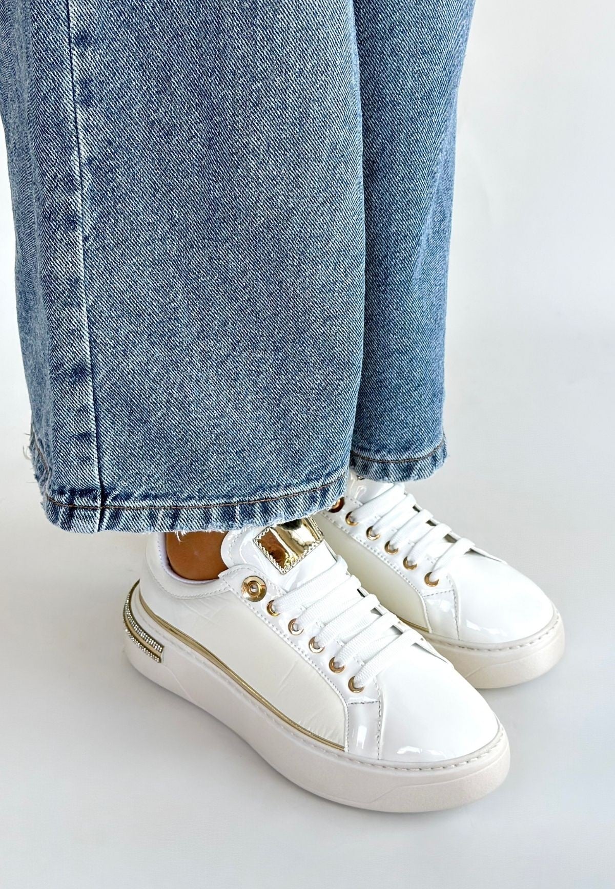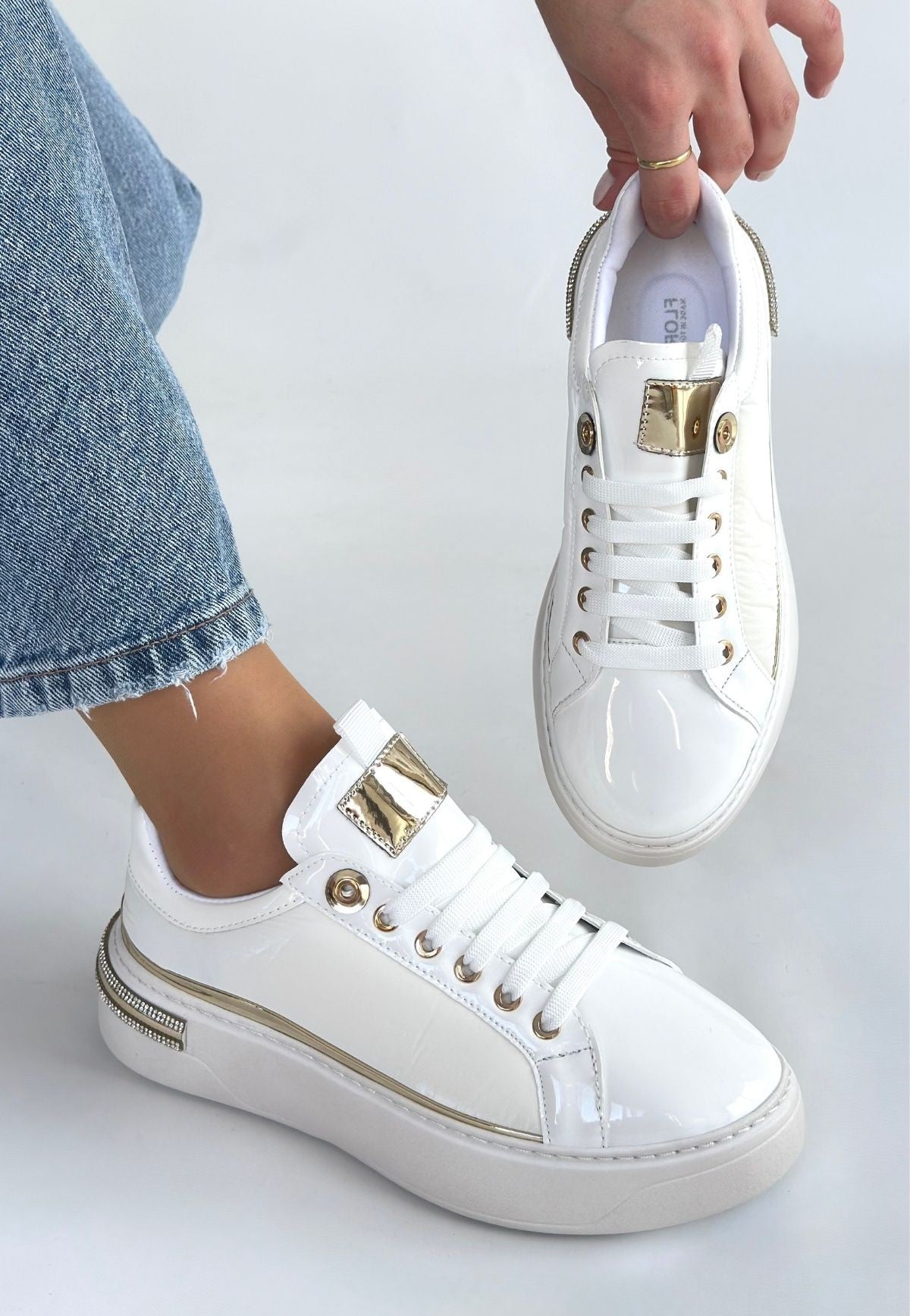 Hley Beyaz Rugan Paraşüt Detaylı Bağcıklı Spor Ayakkabı