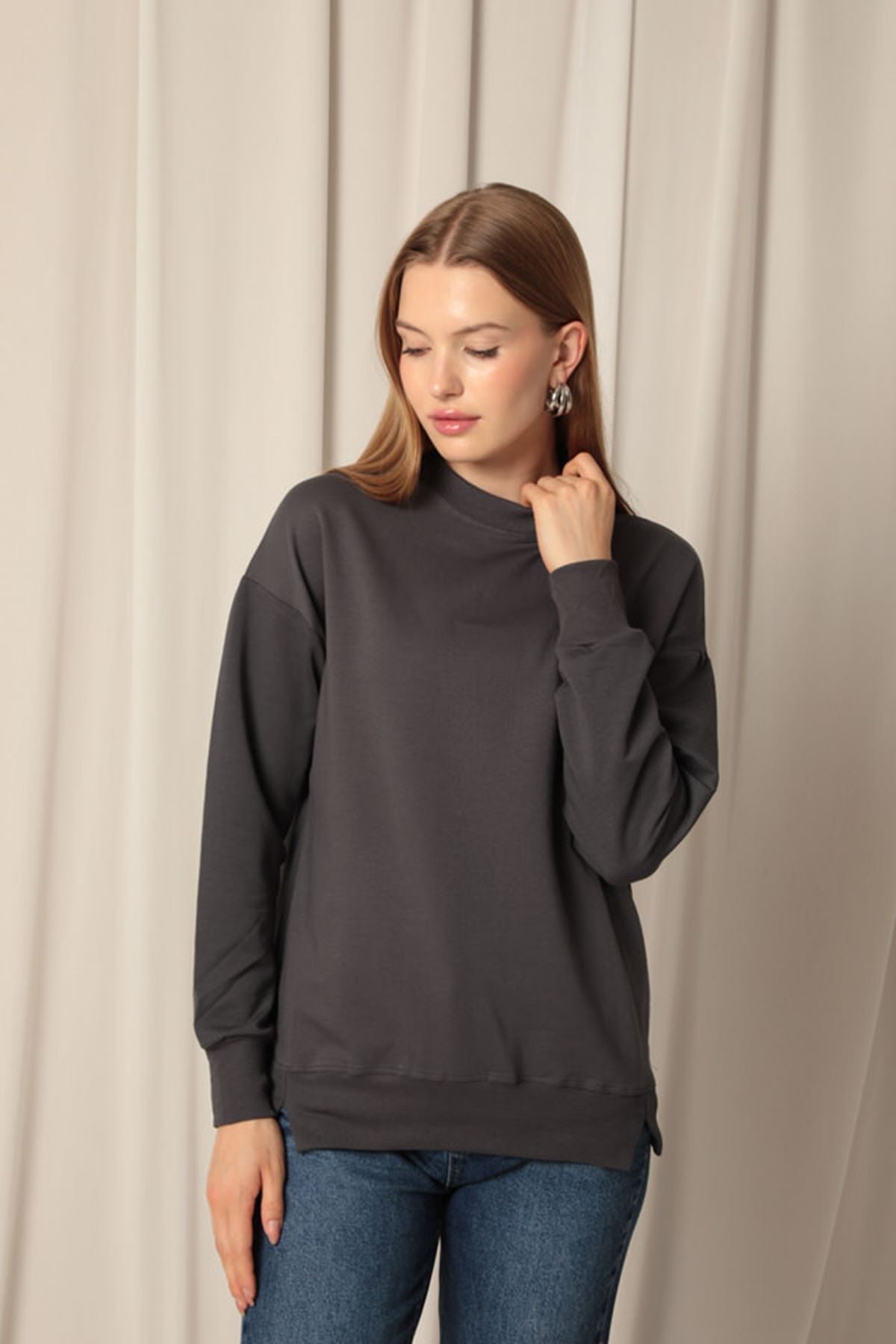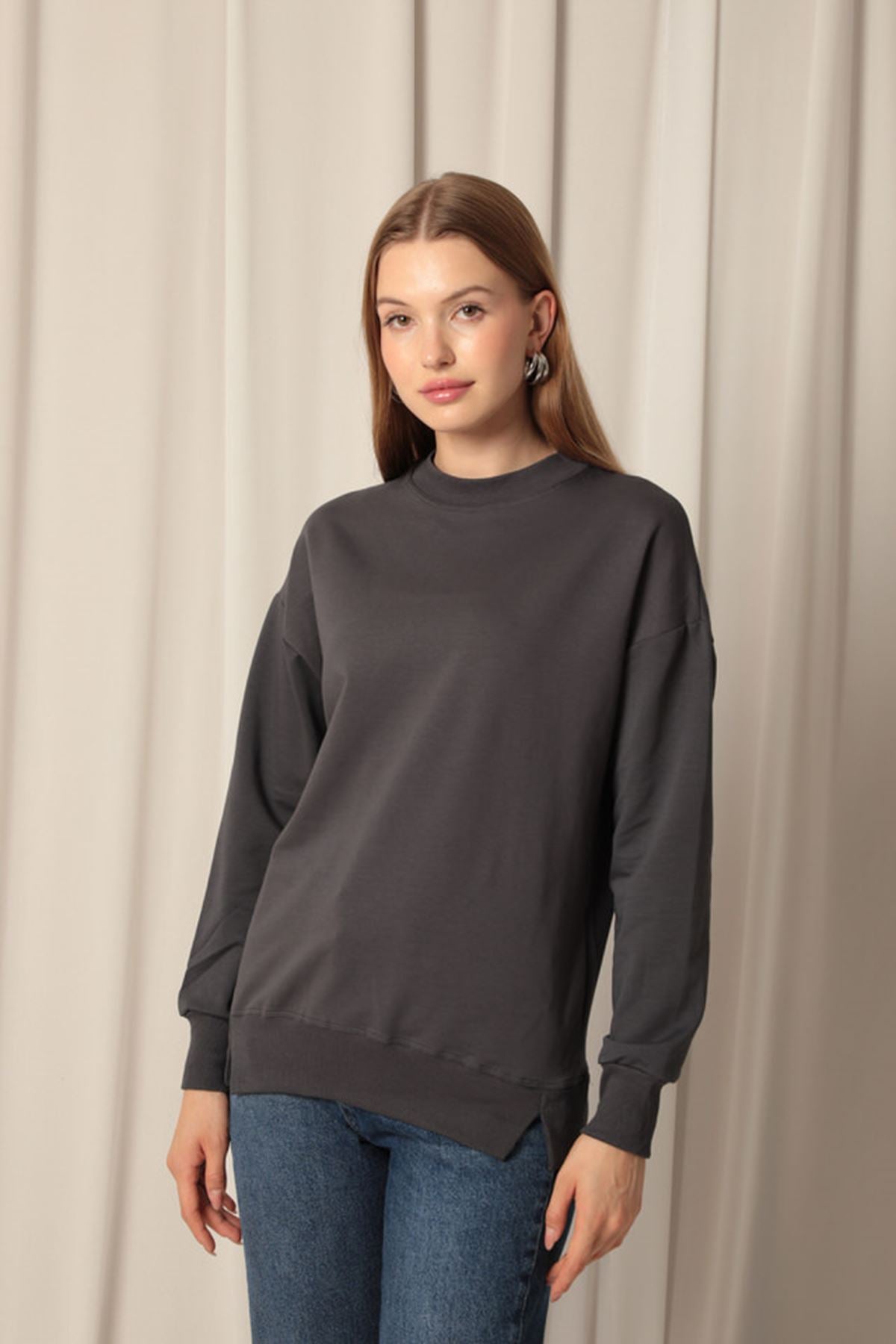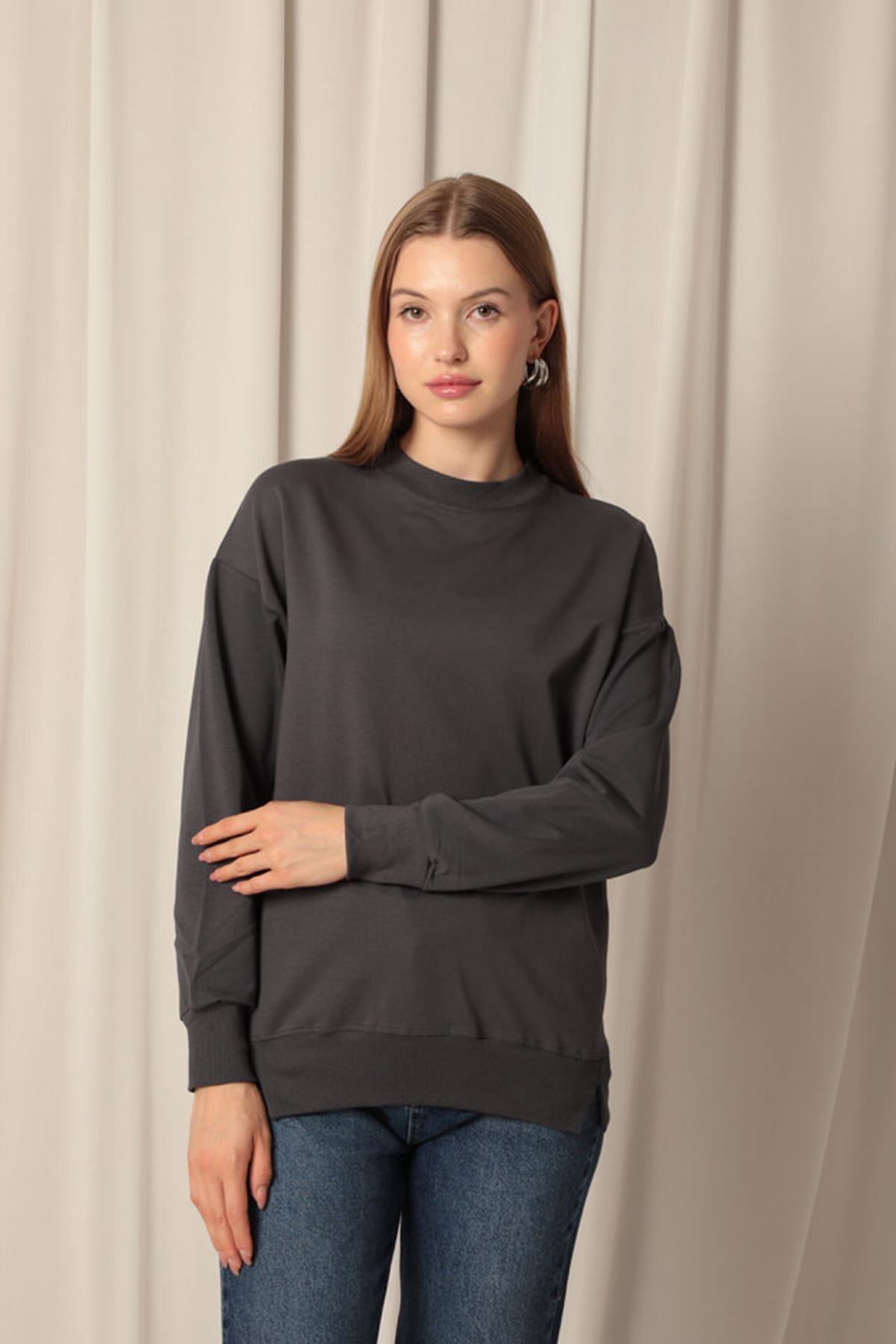 Diger65580İki İplik Kumaş Kadın Antrasit Sweat