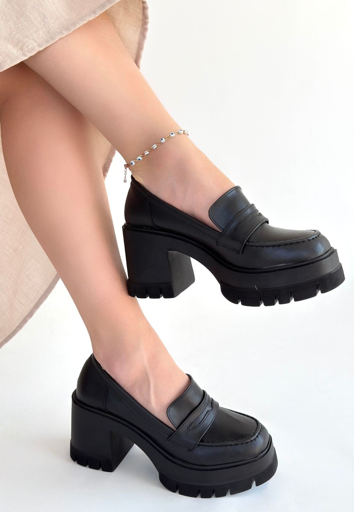 Janes Siyah Cilt Dolgu Topuk Ayakkabı