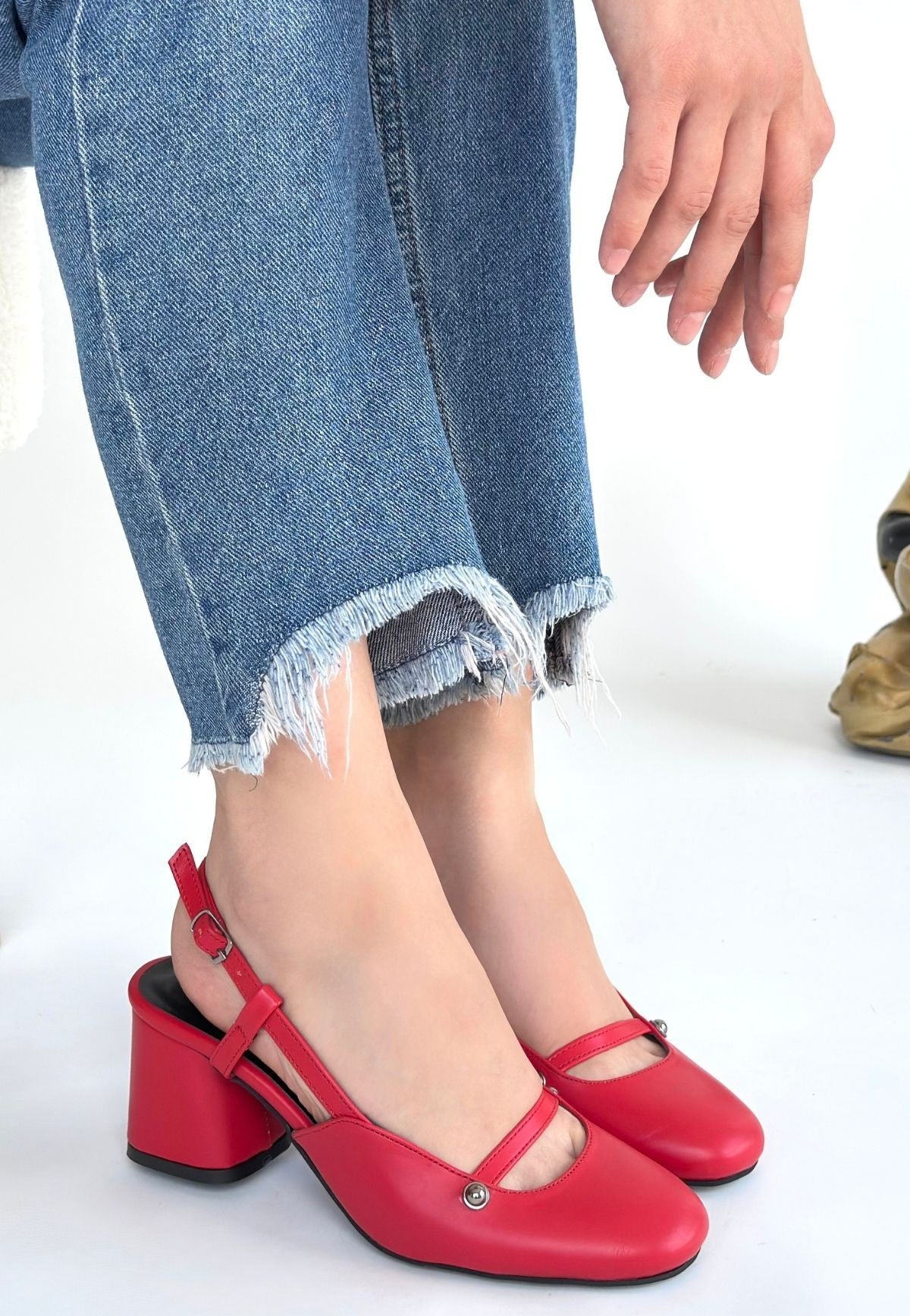 Jecci Kırmızı Cilt Topuklu Ayakkabı