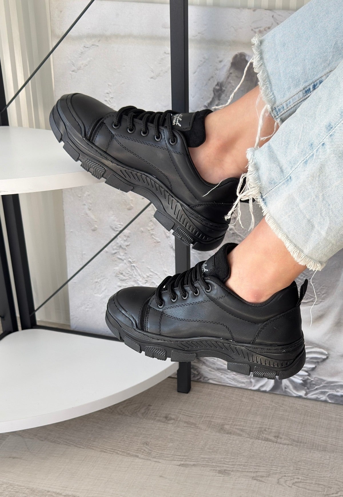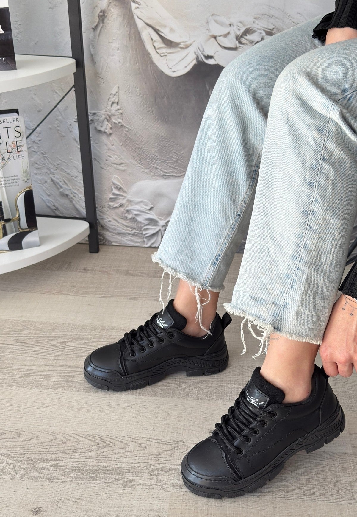 Jule Siyah Cilt Bağcıklı Spor Ayakkabı