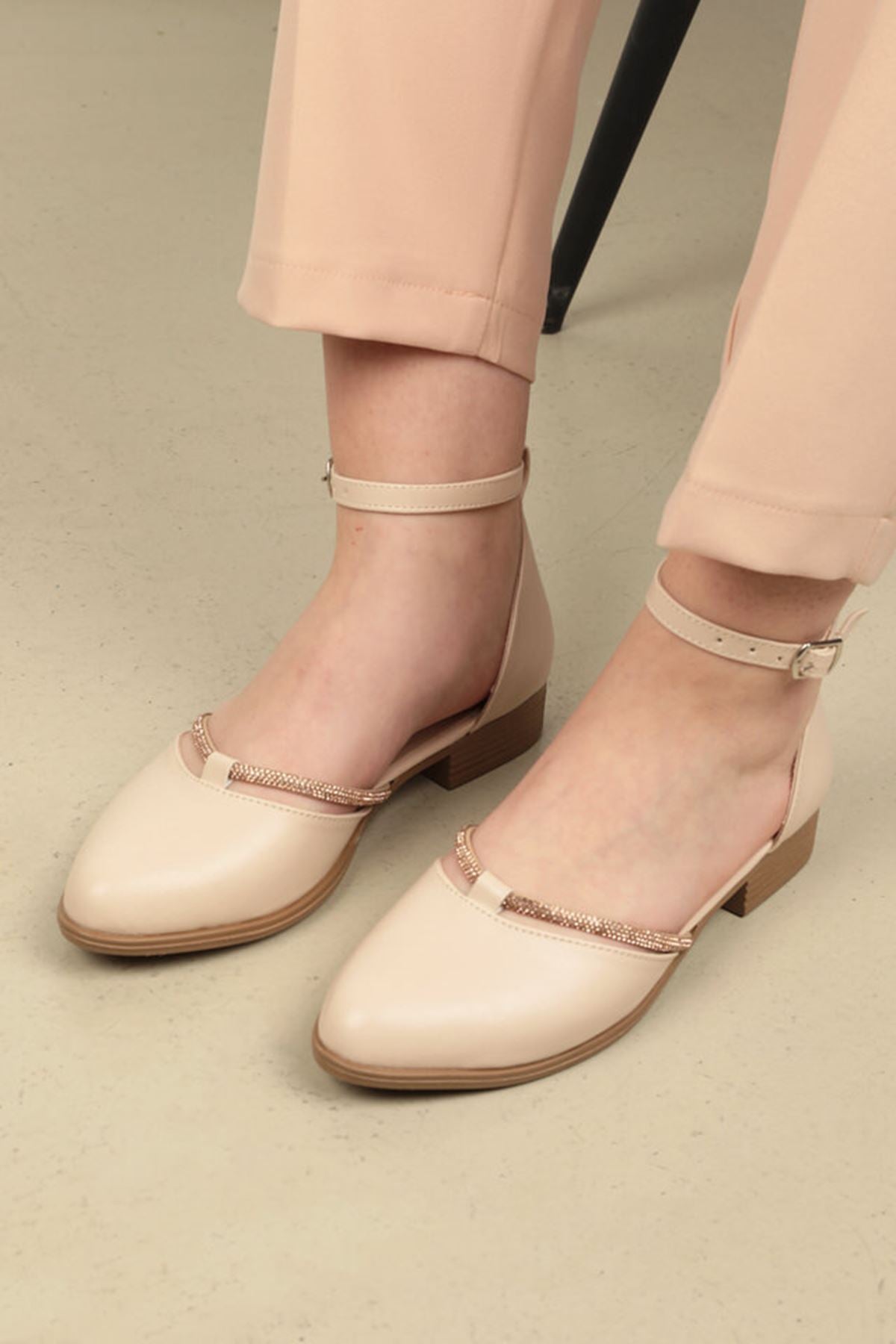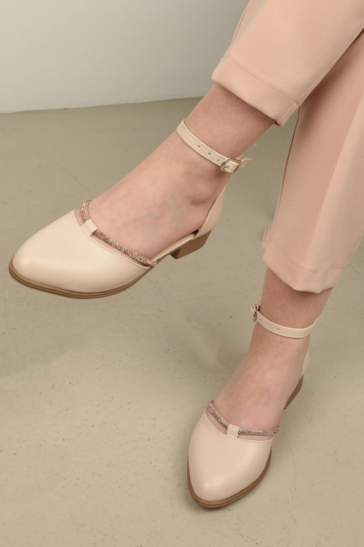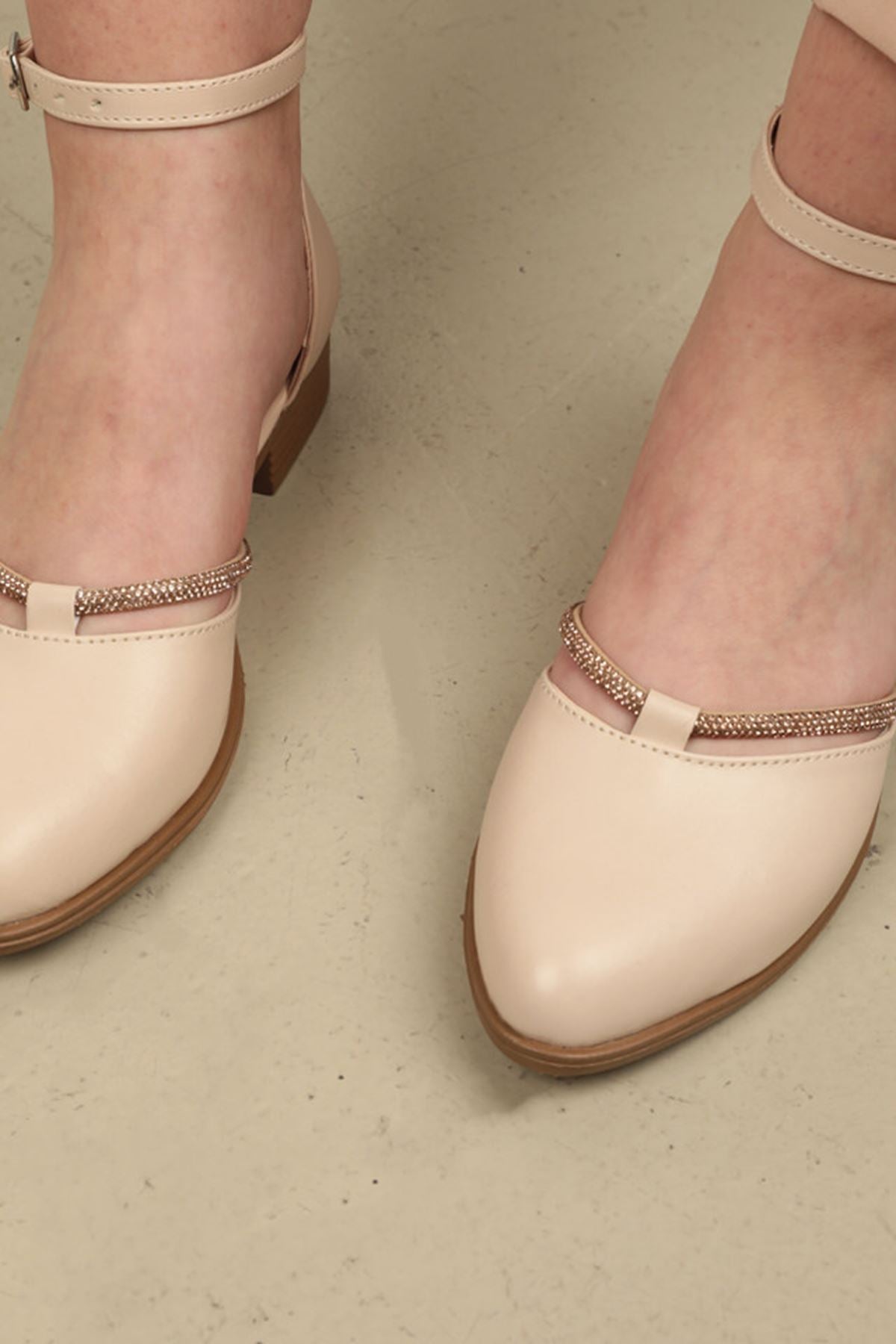 Kadın Kısa Topuklu Abiye Ayakkabı-Ten