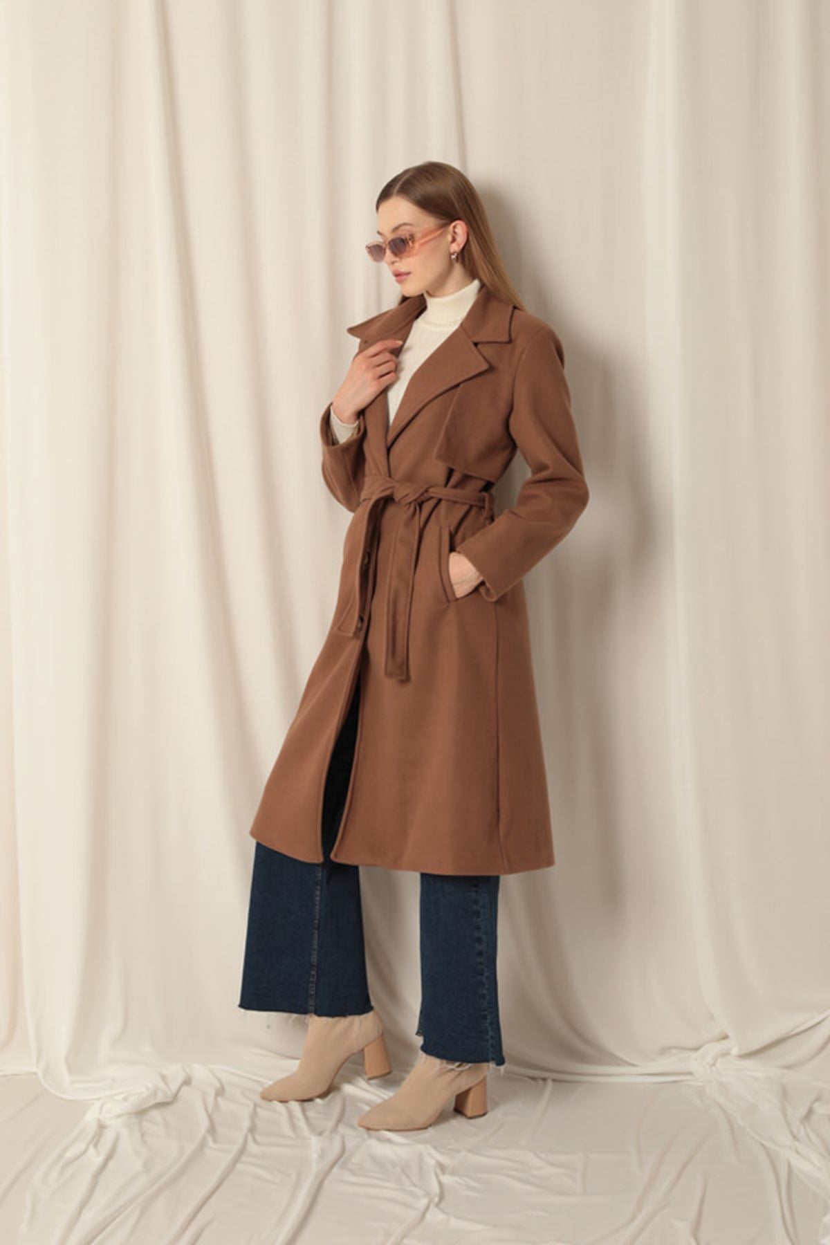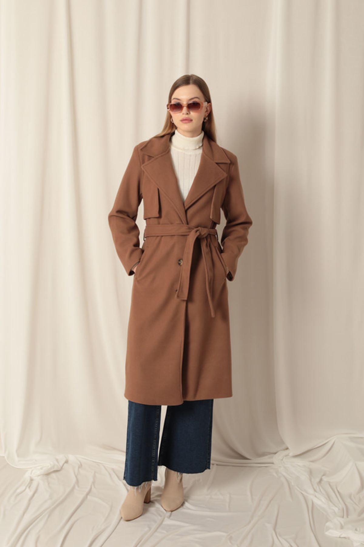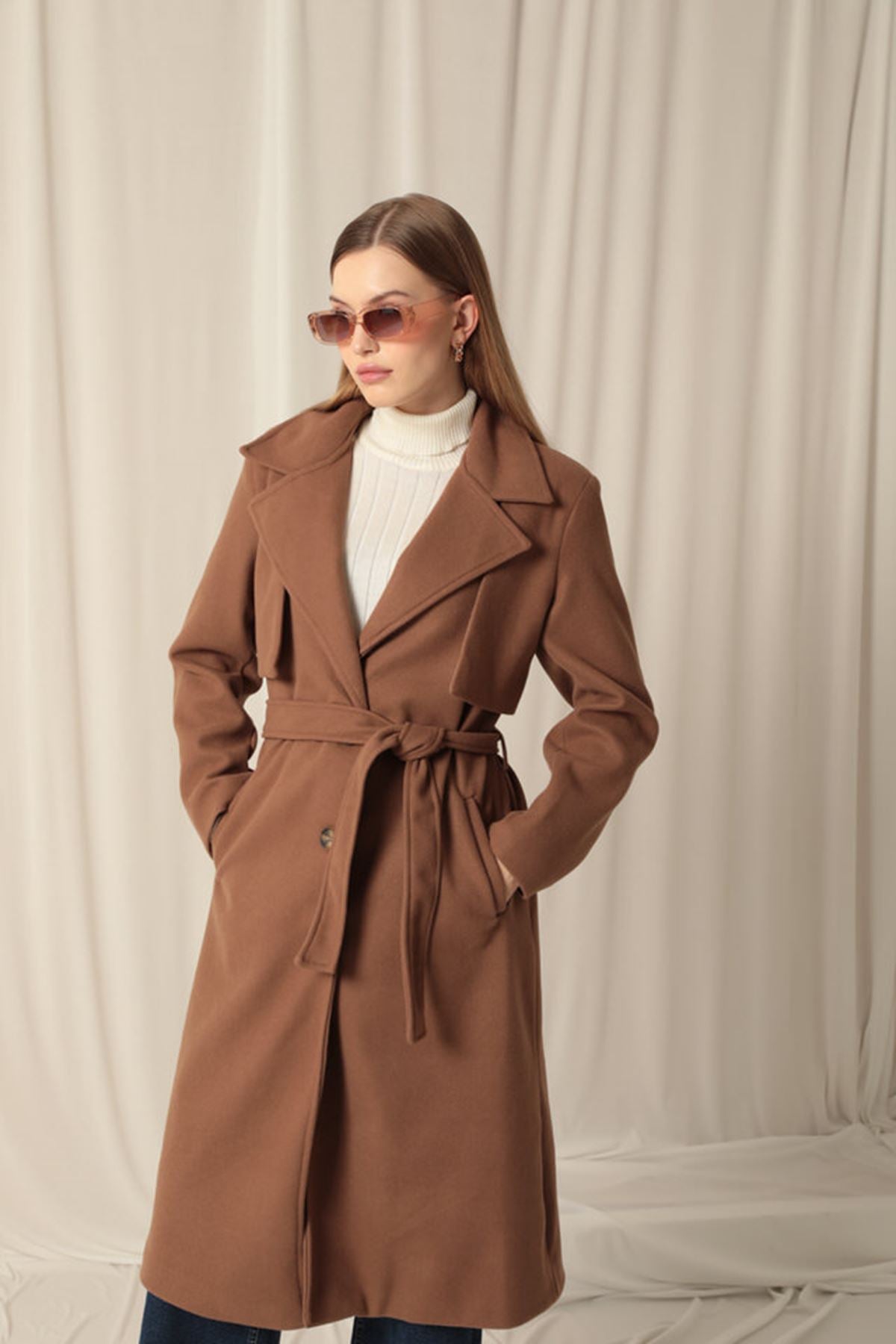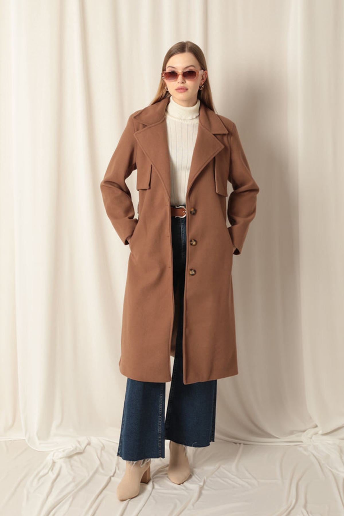 Kaşe Kumaş Allerli Kadın Taba Kaban