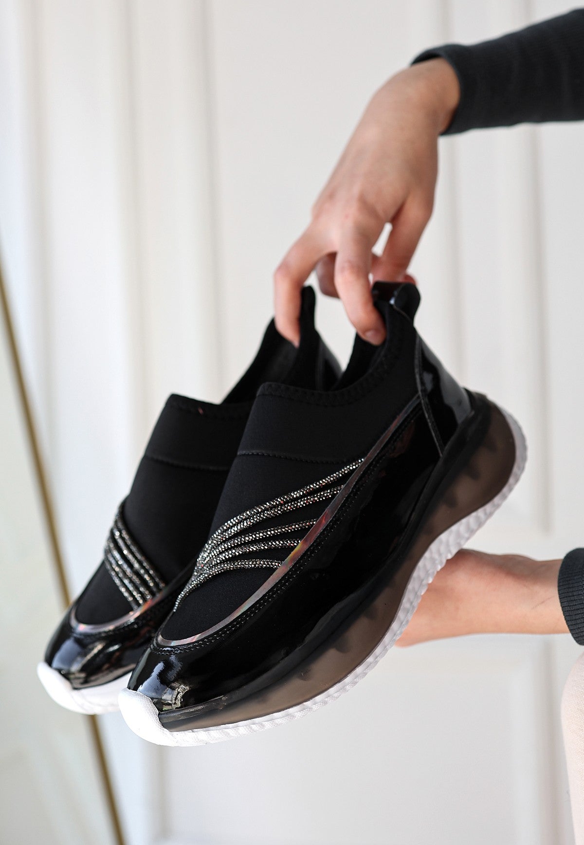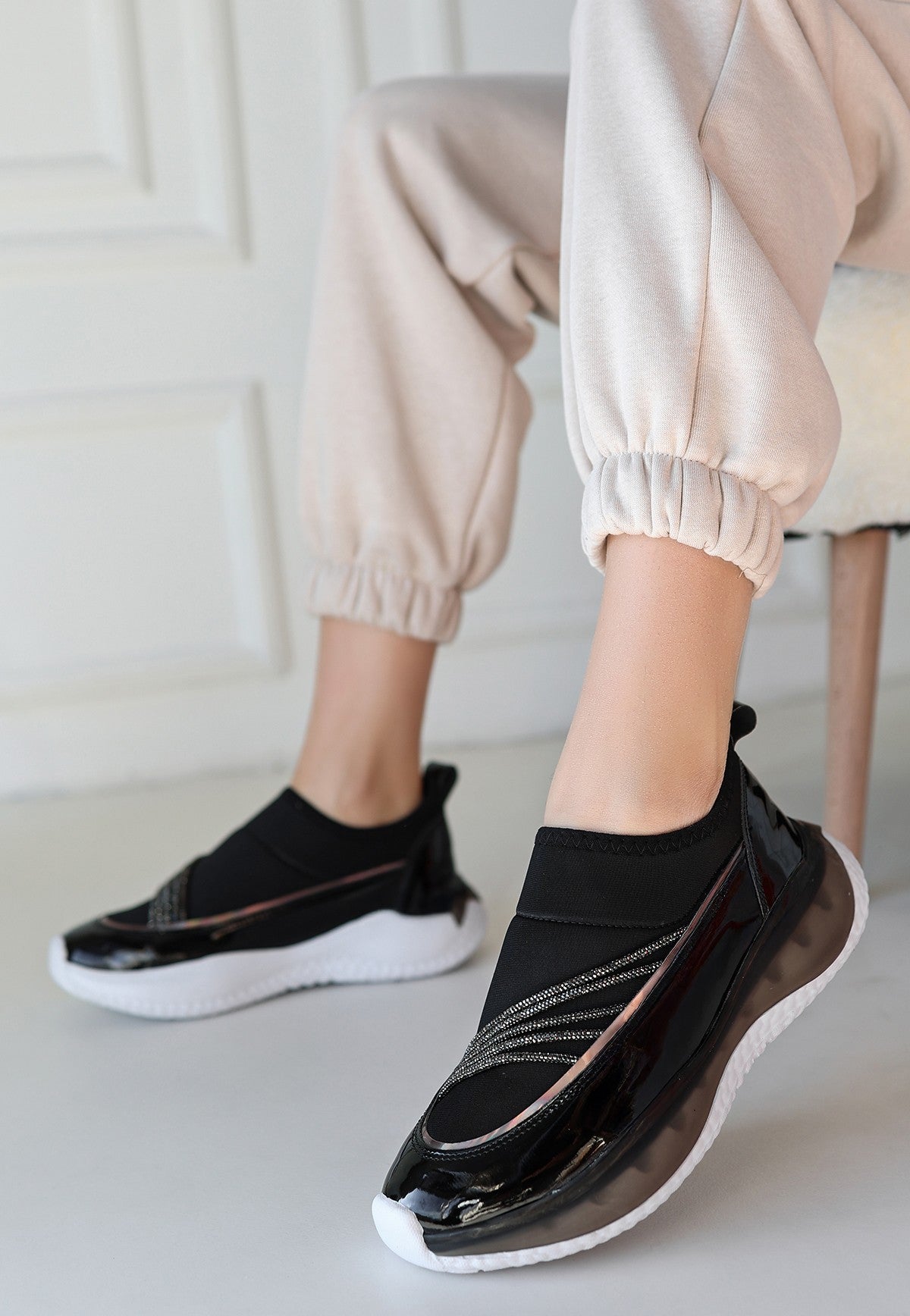 Keita Siyah Rugan Streç Detaylı Spor Ayakkabı