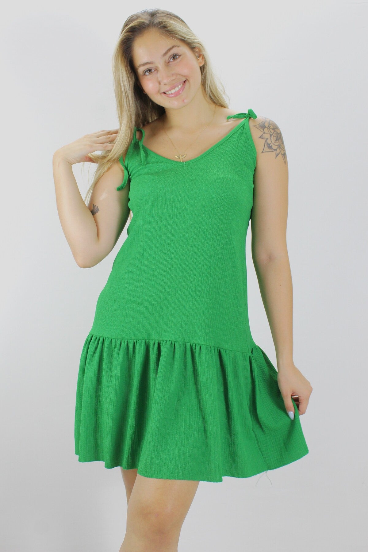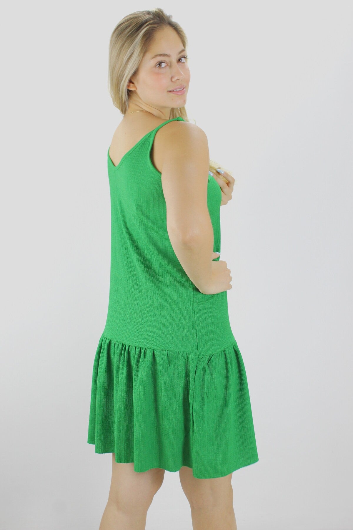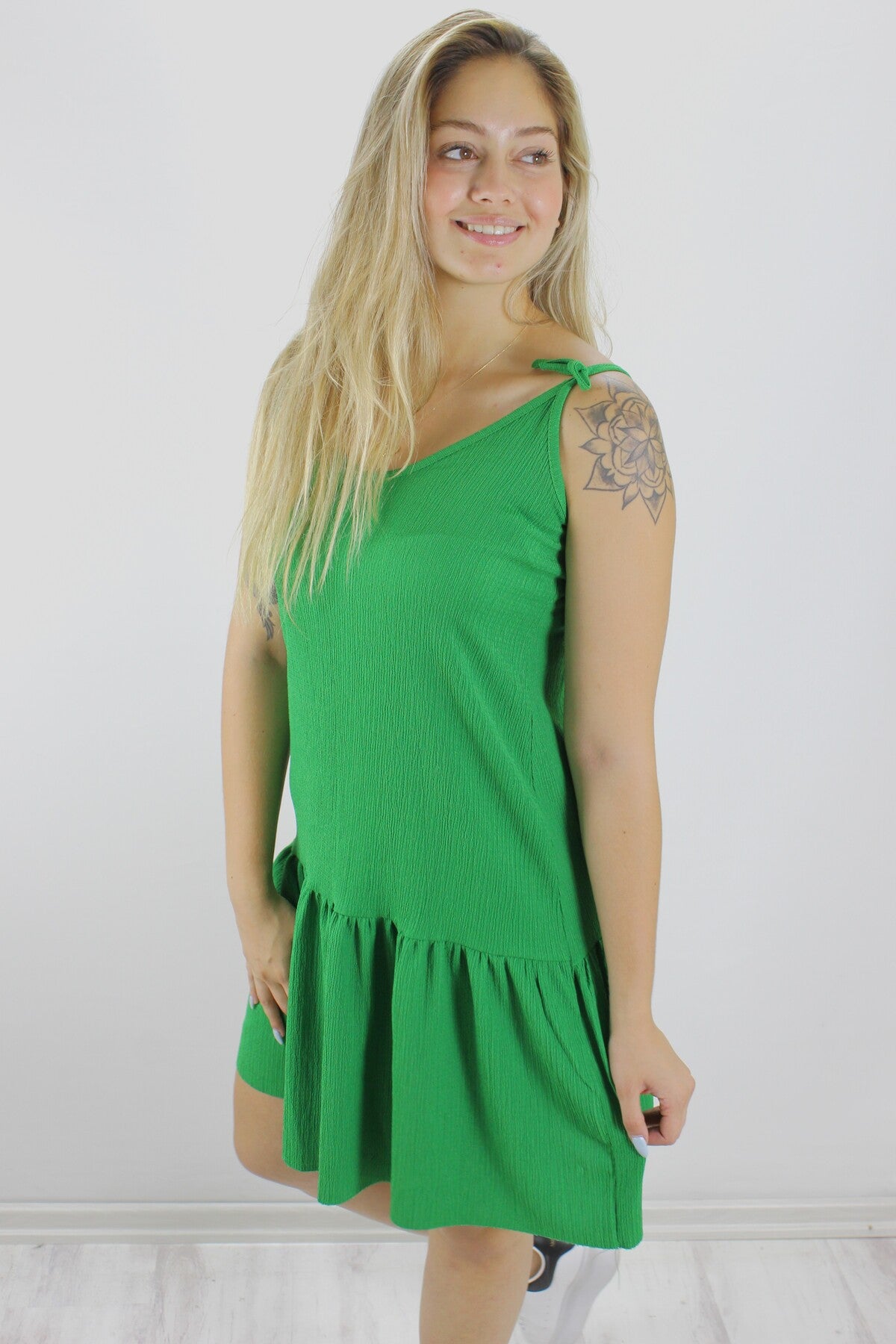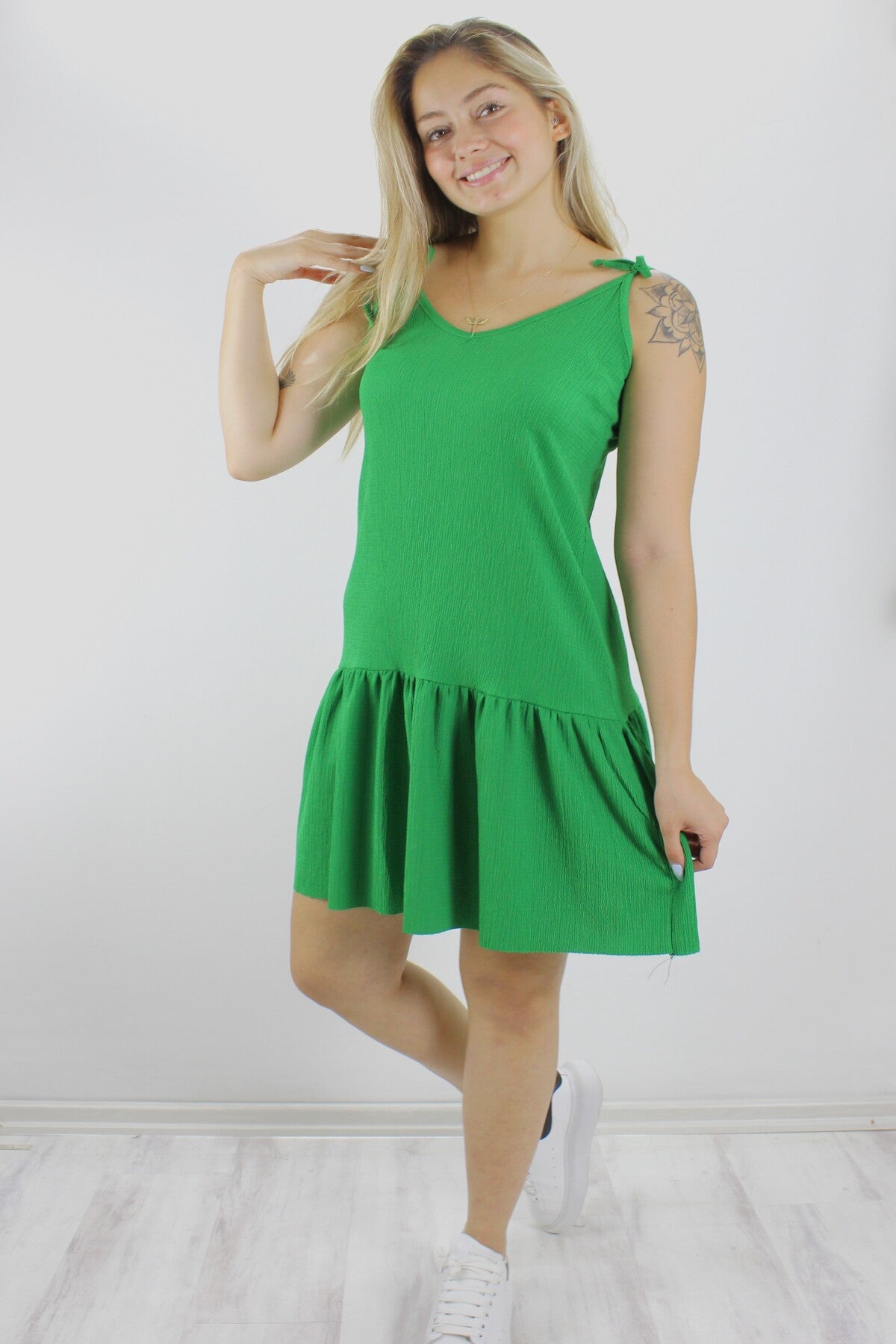 Krinkıl İp Askılı Elbise Yeşil - 1456.65
