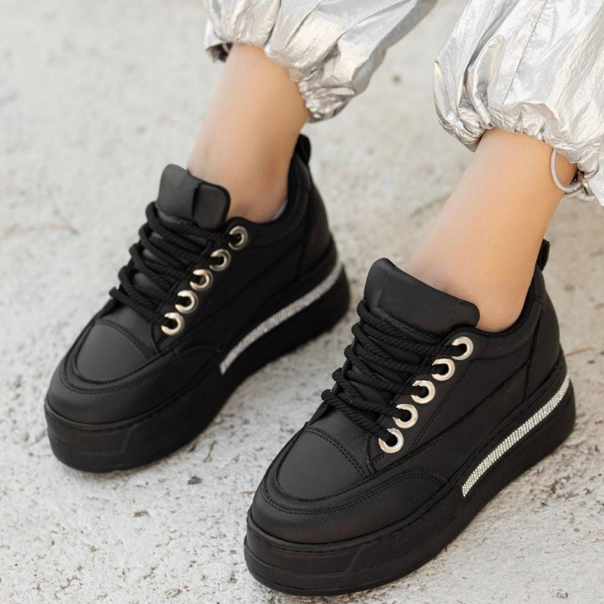 Lulu Siyah Cilt Bağcıklı Spor Ayakkabı