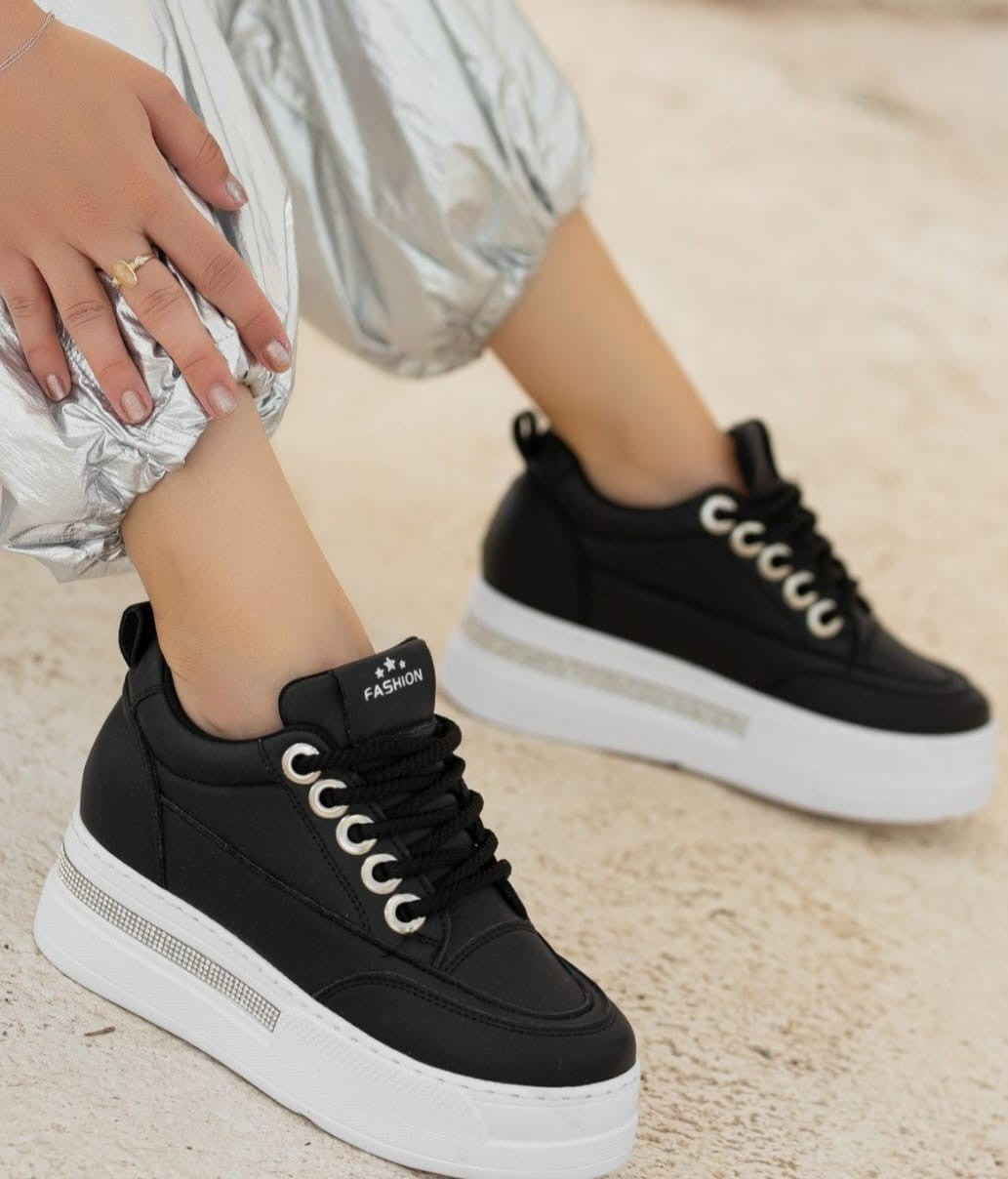 Lulu Siyah Cilt Beyaz Tabanlı Bağcıklı Spor Ayakkabı
