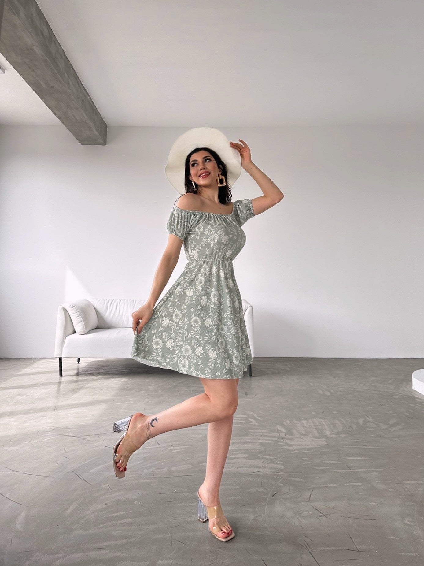 Diğer84540Madonna Yaka Çiçek Desenli Krinkıl Elbise