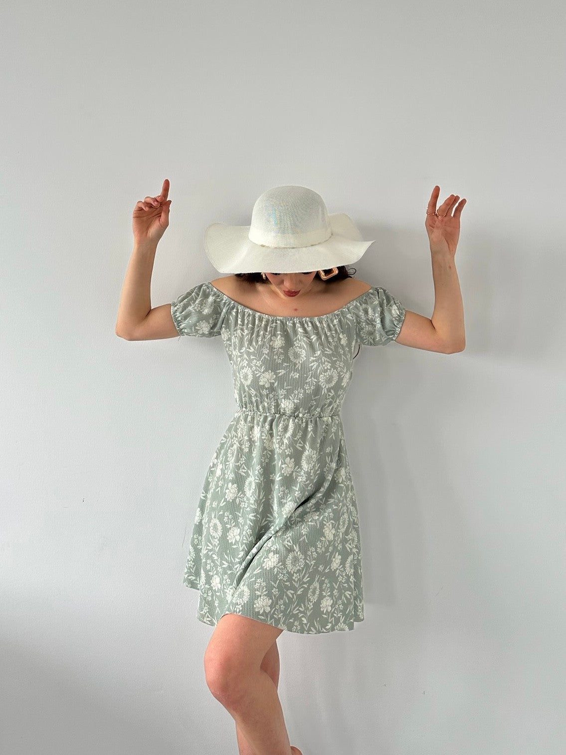 Madonna Yaka Çiçek Desenli Krinkıl Elbise