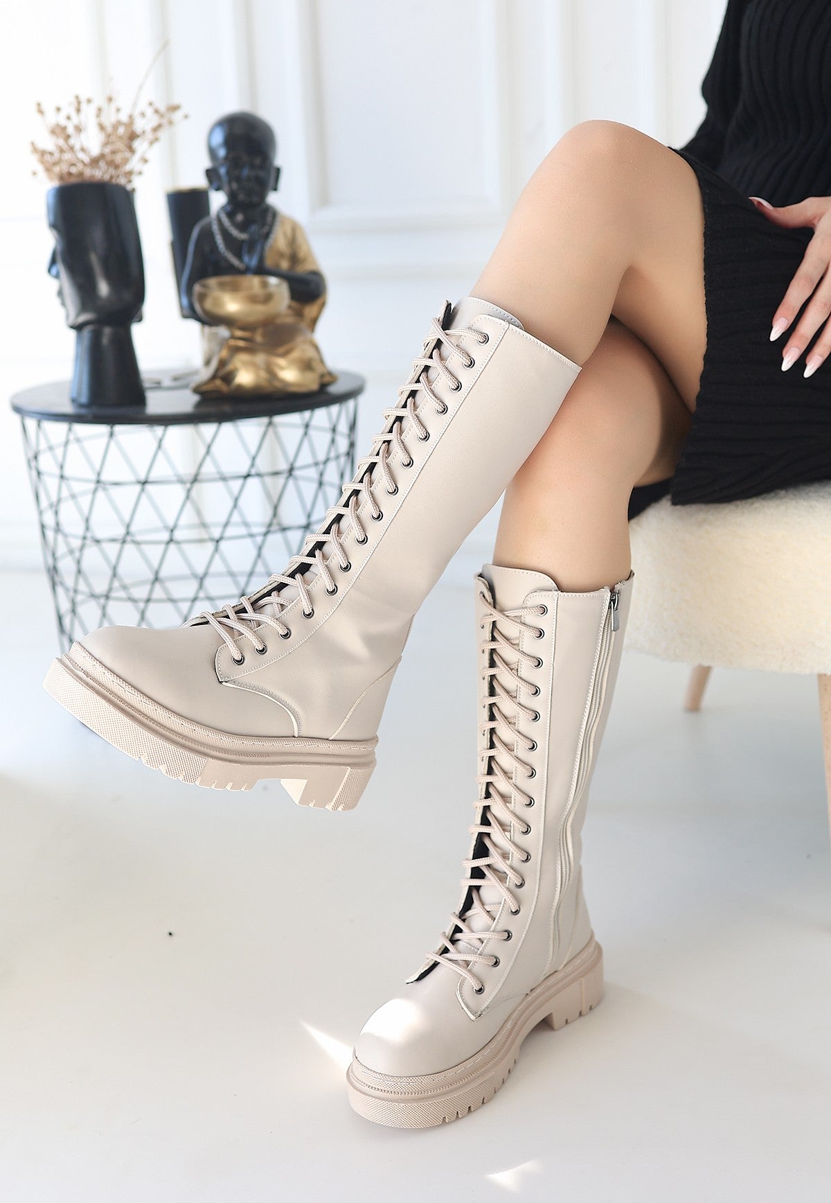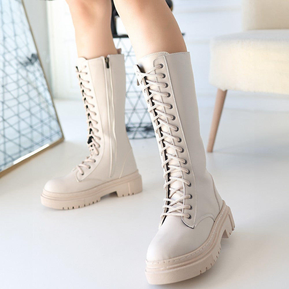 Mennd Bej Cilt Bağcıklı Çizme