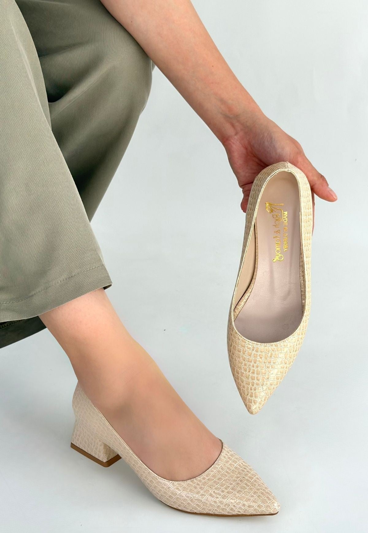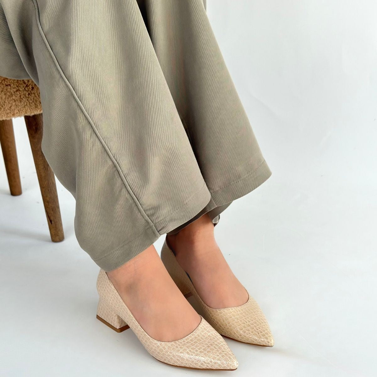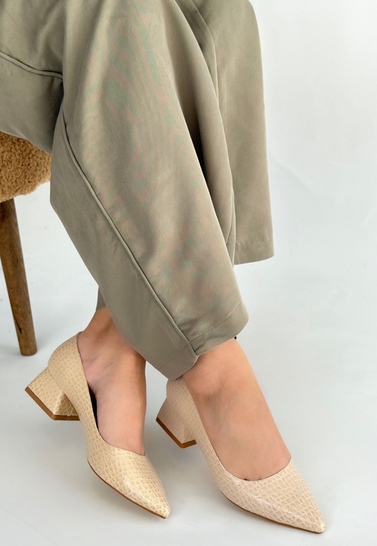 Meort Bej Rugan Topuklu Ayakkabı