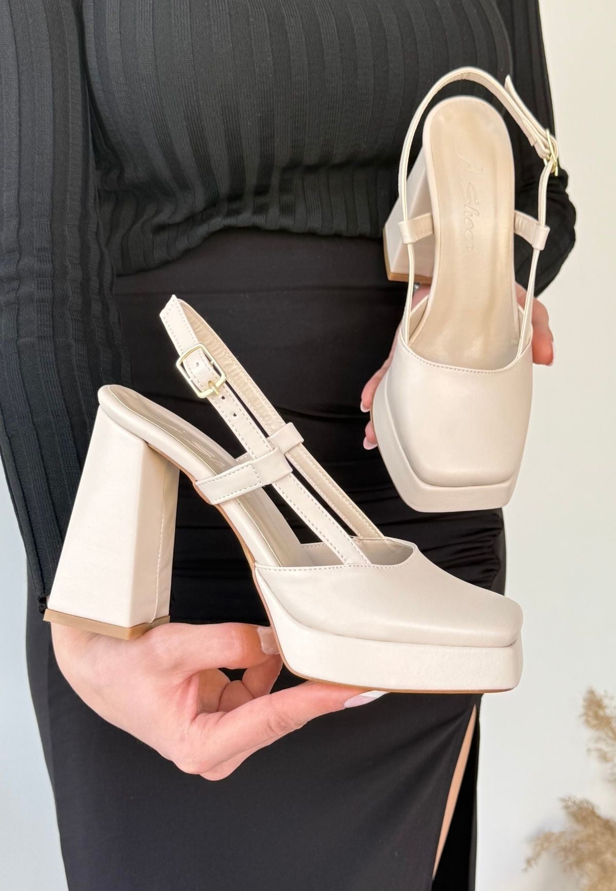 Diğer86477Mety Bej Cilt Topuklu Ayakkabı