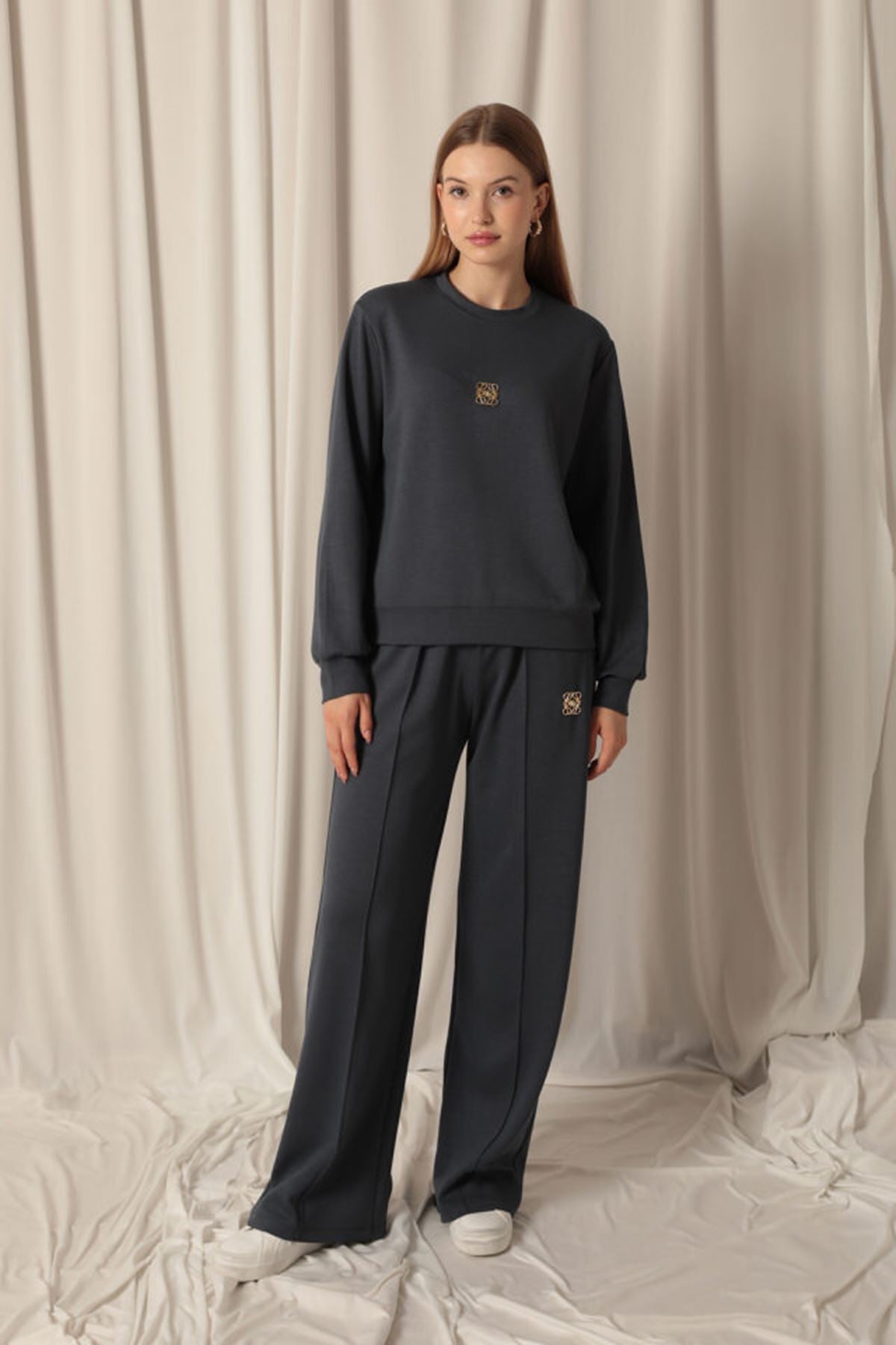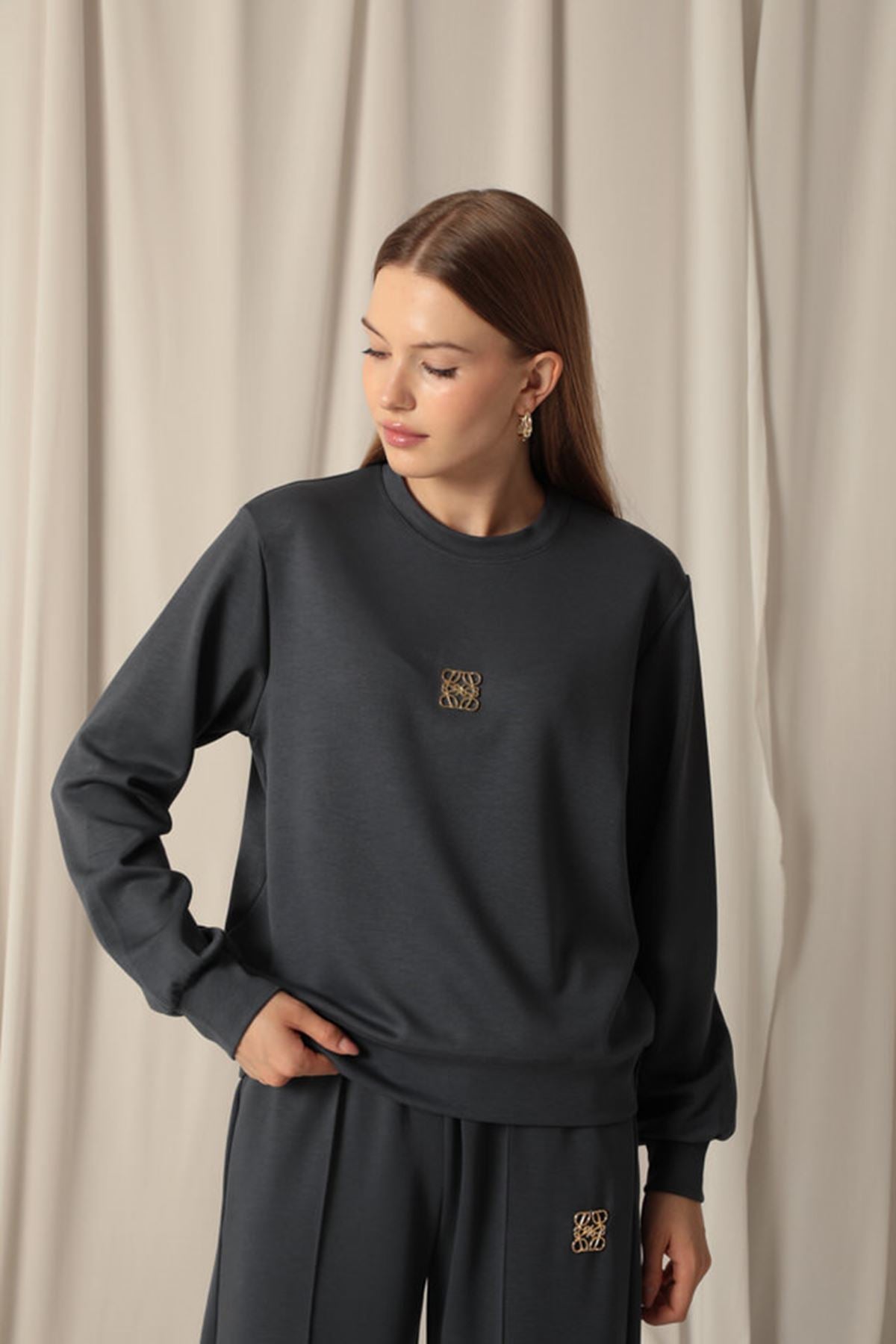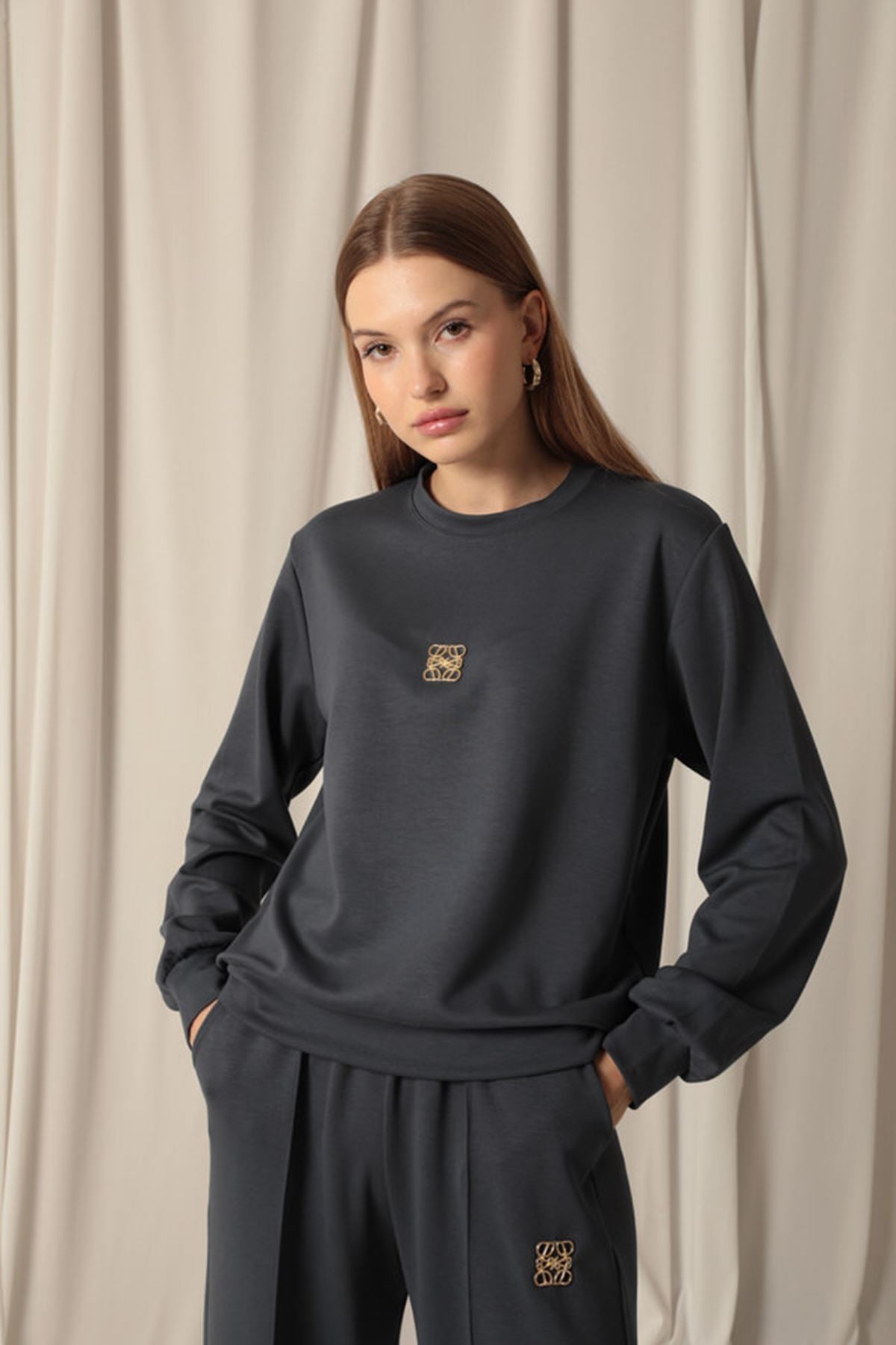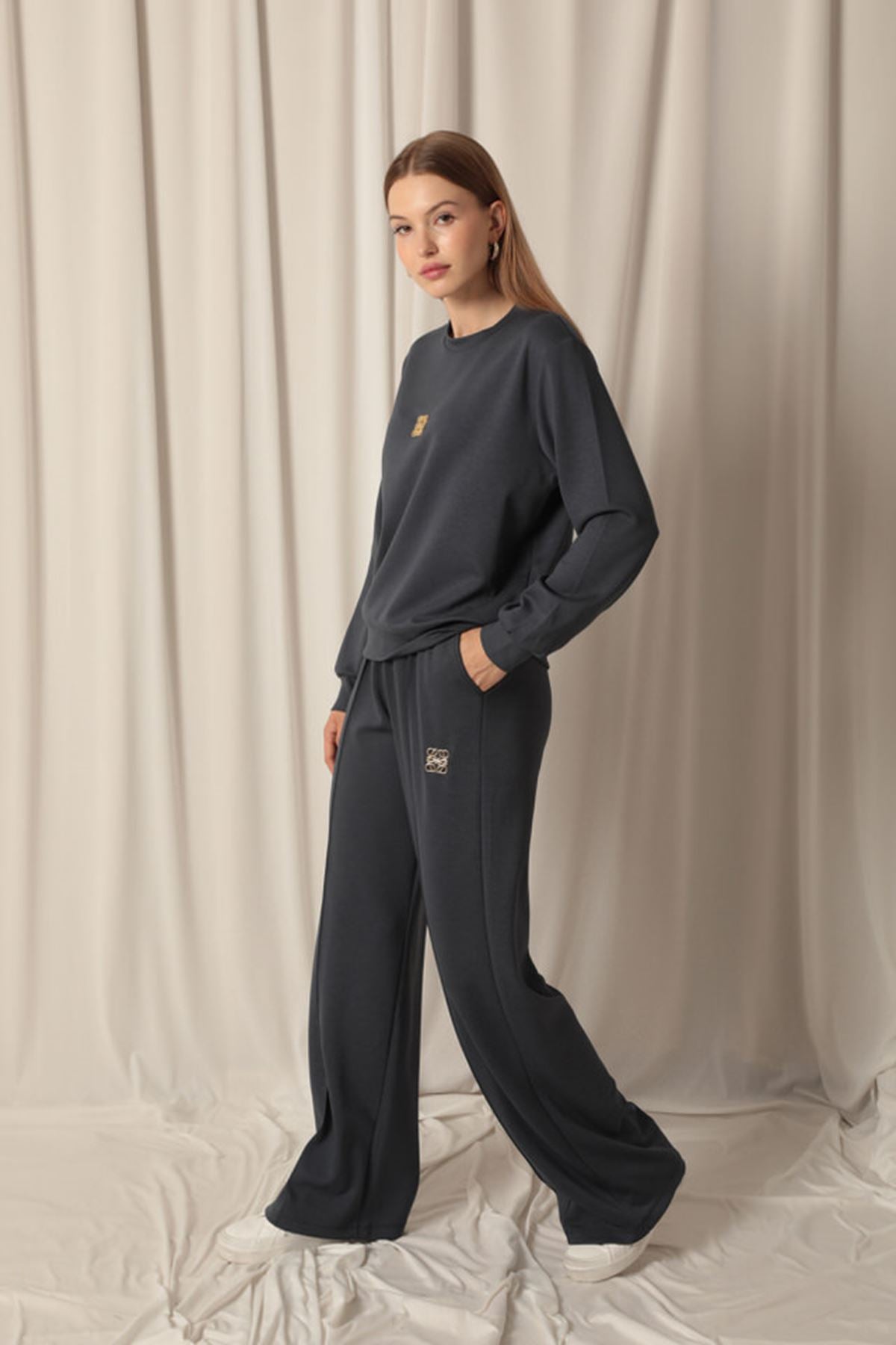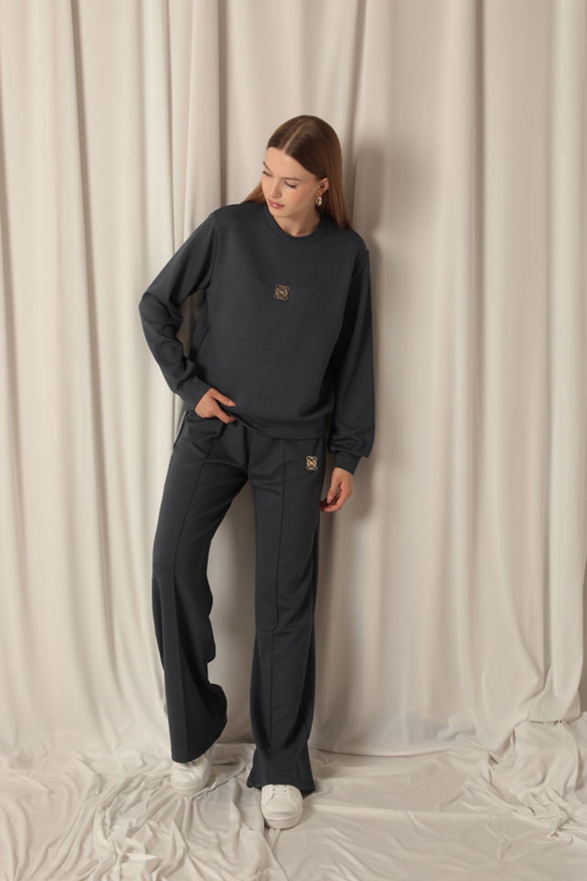 Modal Kumaş Metal Aksesuarlı Kadın Antrasit Takım