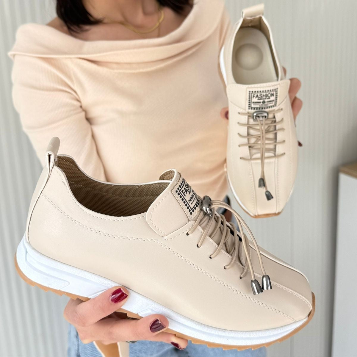Monya Bej Cilt Bağcıklı Spor Ayakkabı