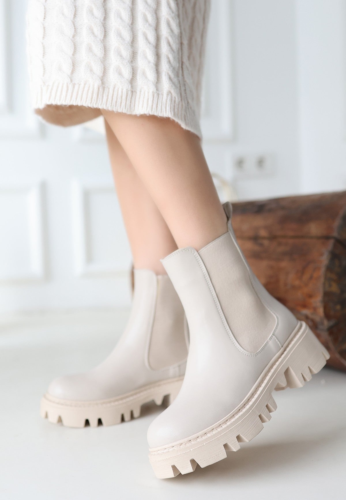 Diğer86829Ninle Bej Cilt Topuklu Bot