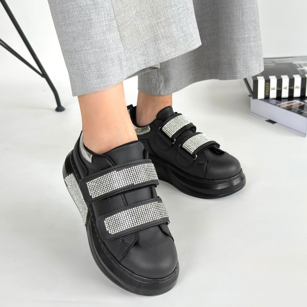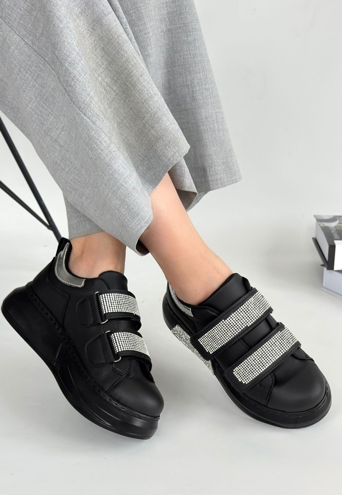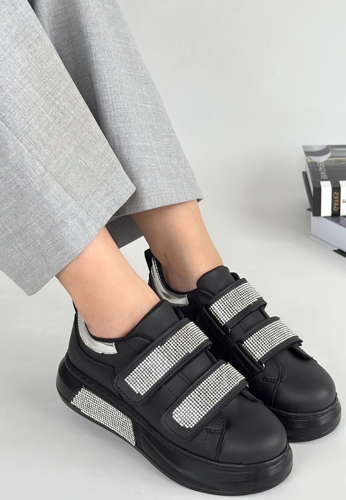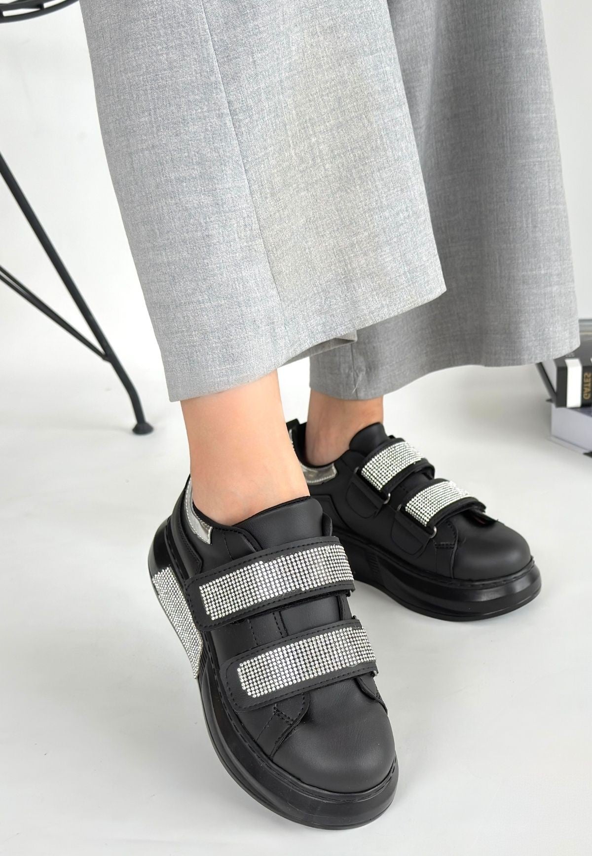 Nino Siyah Cilt Cırt Cırtlı Spor Ayakkabı