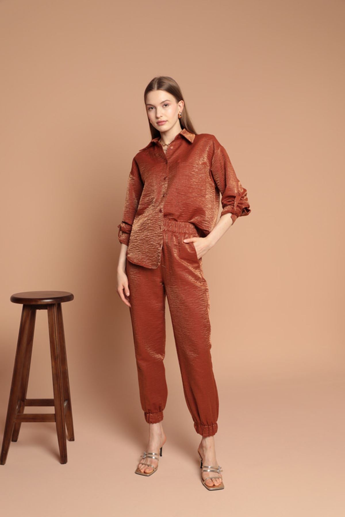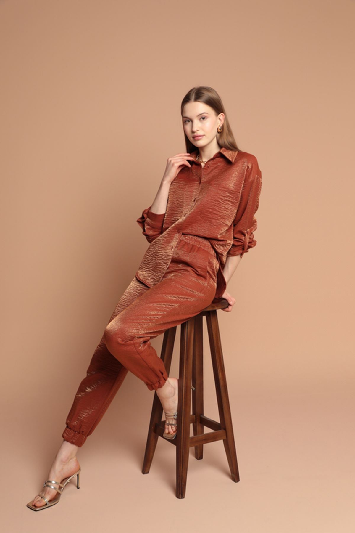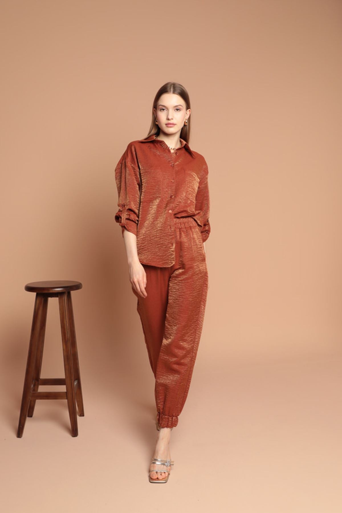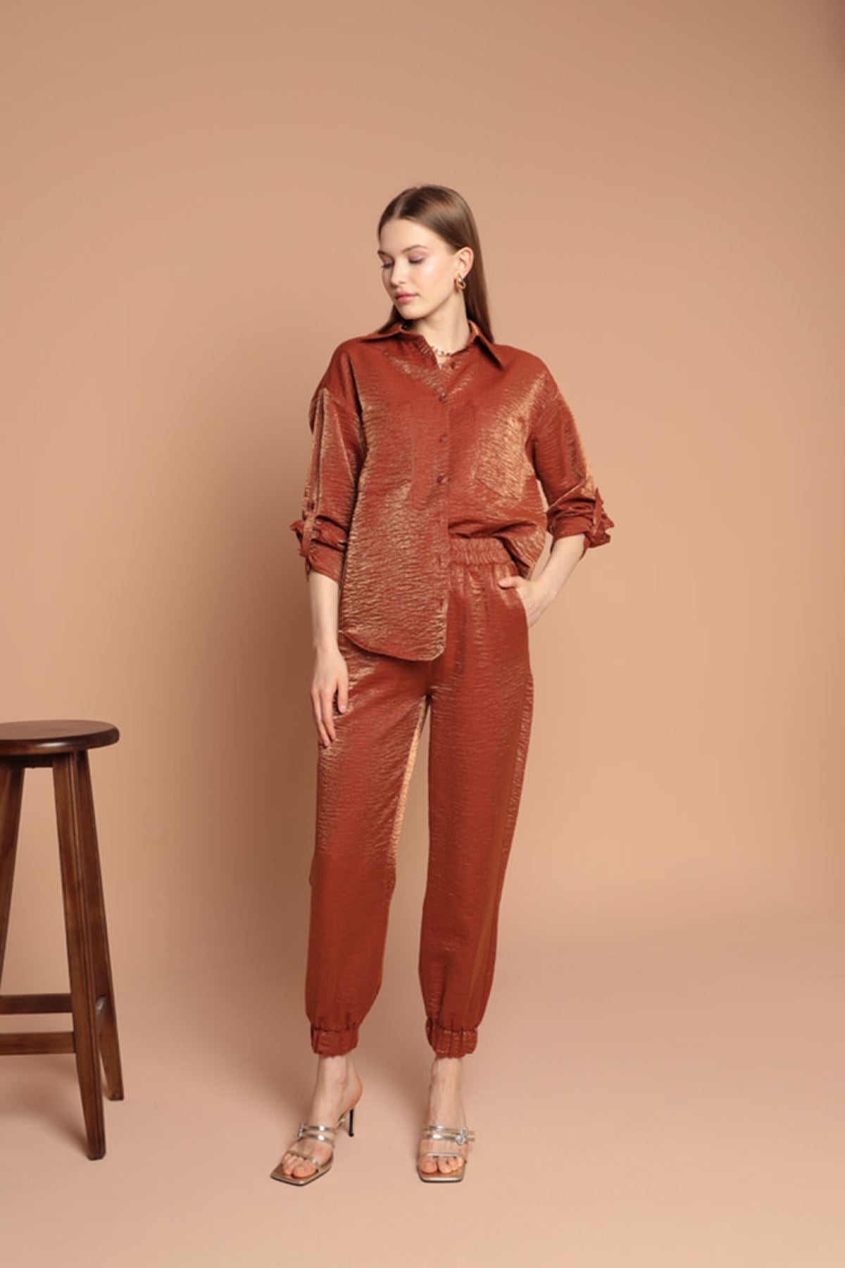 Diger72892Parlak Kumaş Kadın Takım-Kahve