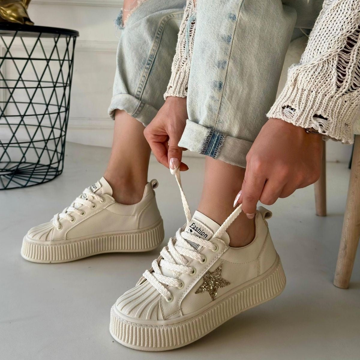 Piata Bej Cilt Bej Tabanlı Bağcıklı Spor Ayakkabı