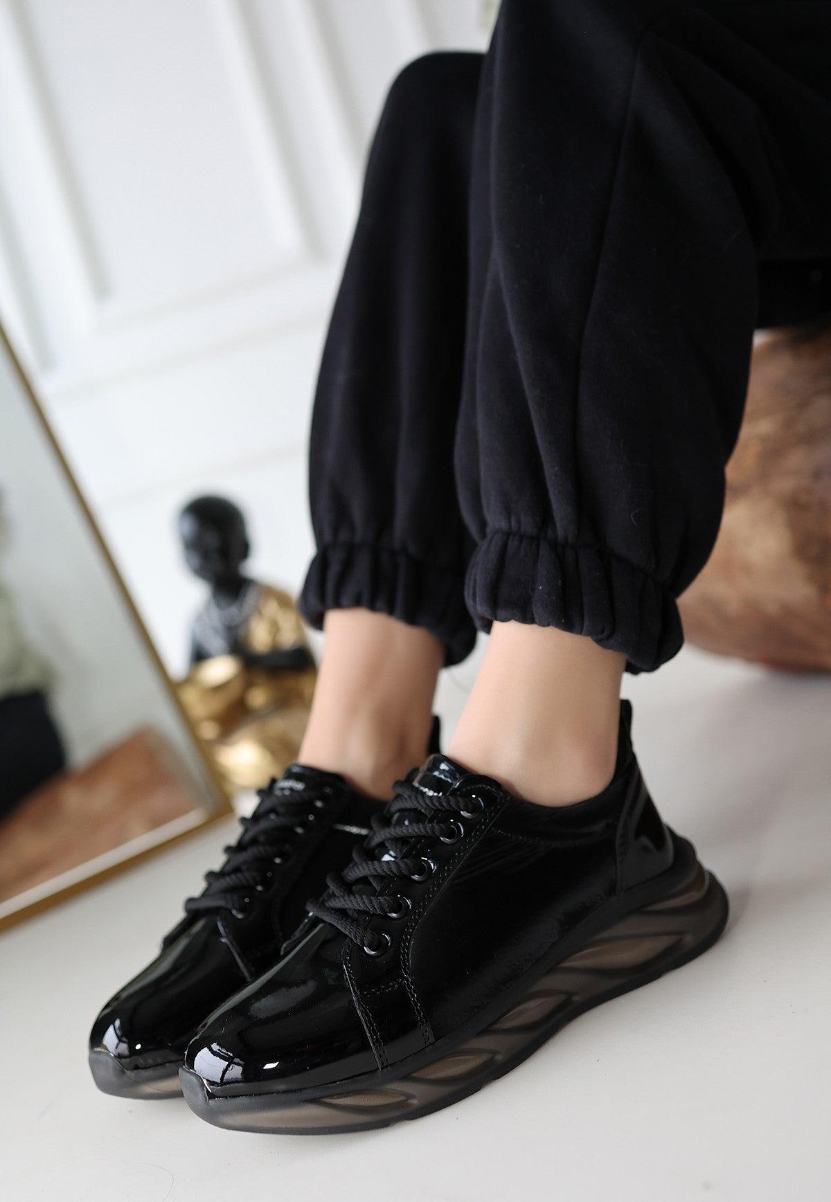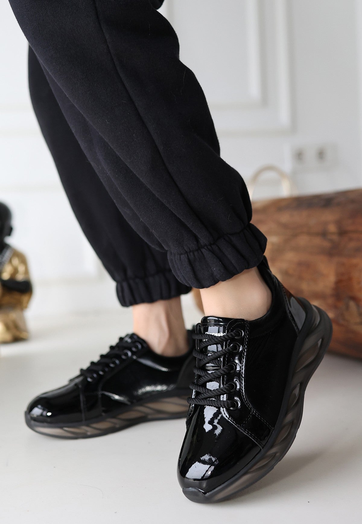 Piona Siyah Rugan Gri Tabanlı Spor Ayakkabı