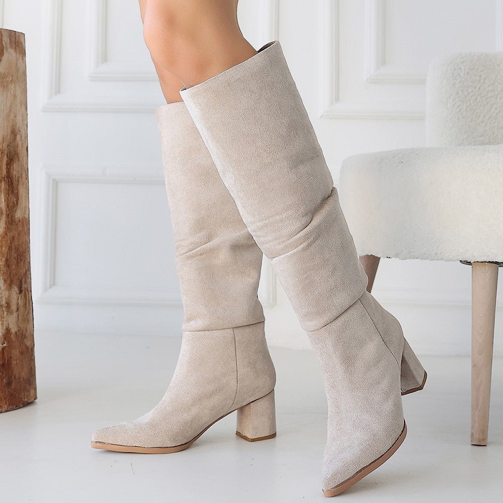 Pitay Bej Süet Topuklu Çizme