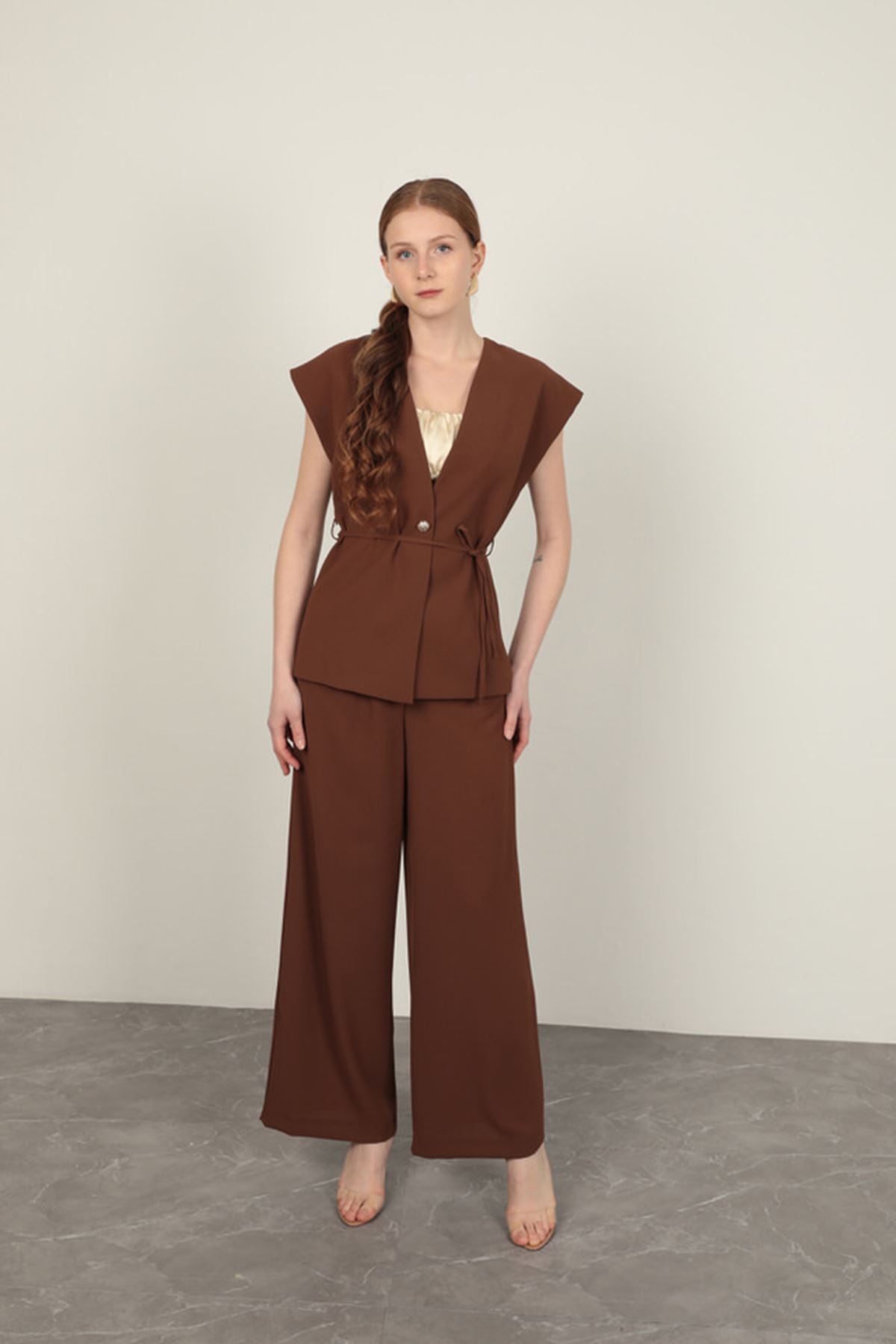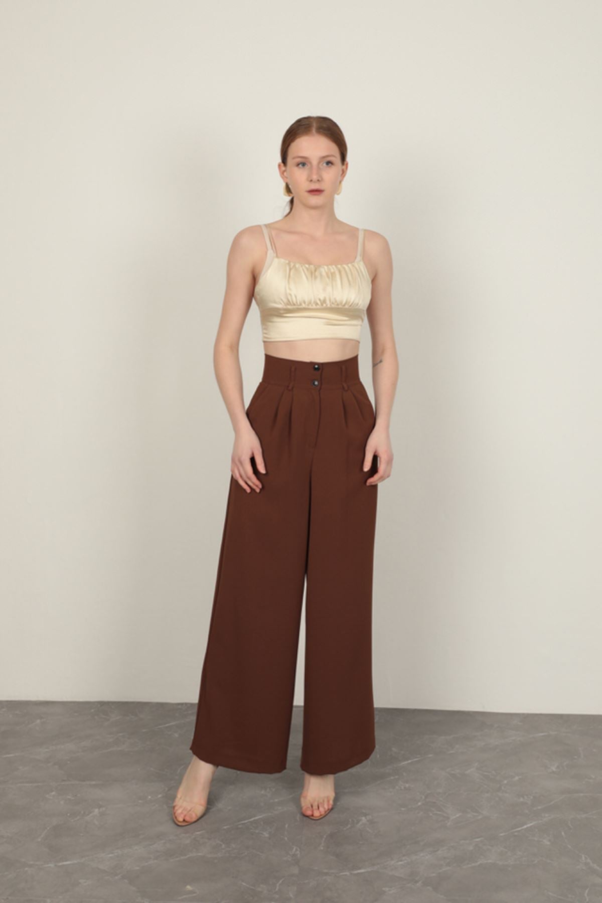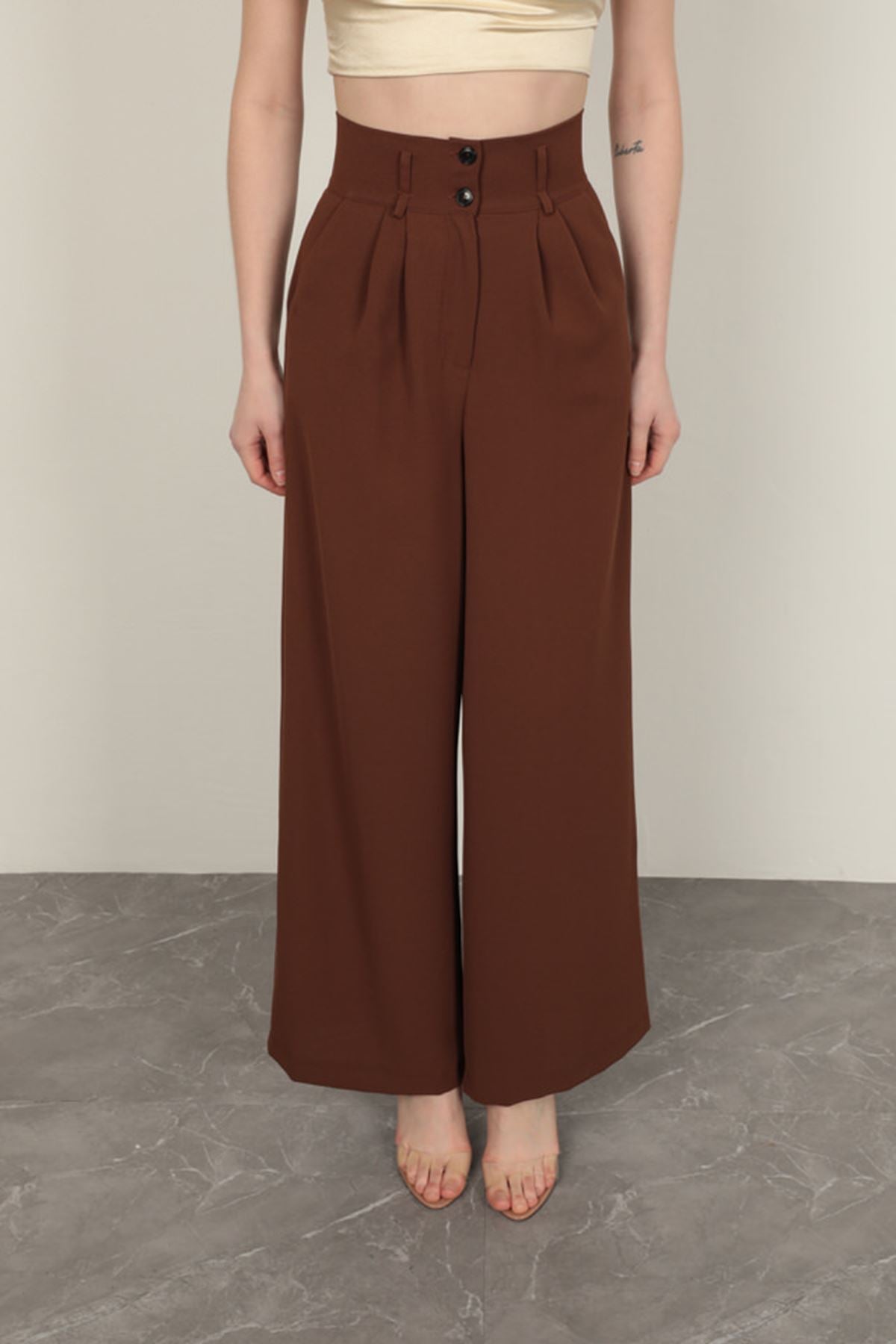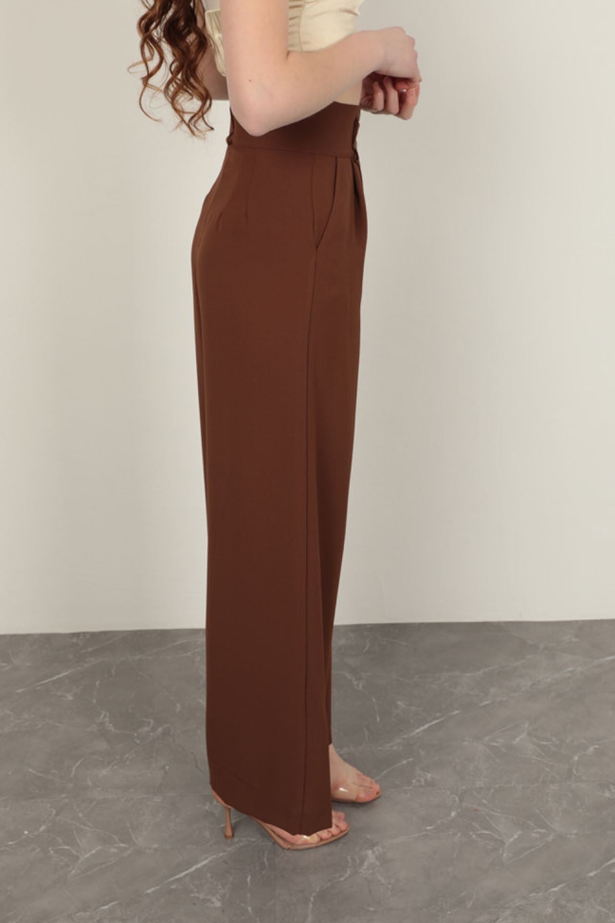 Poliviskon Kumaş Kadın Pantolon-Kahve