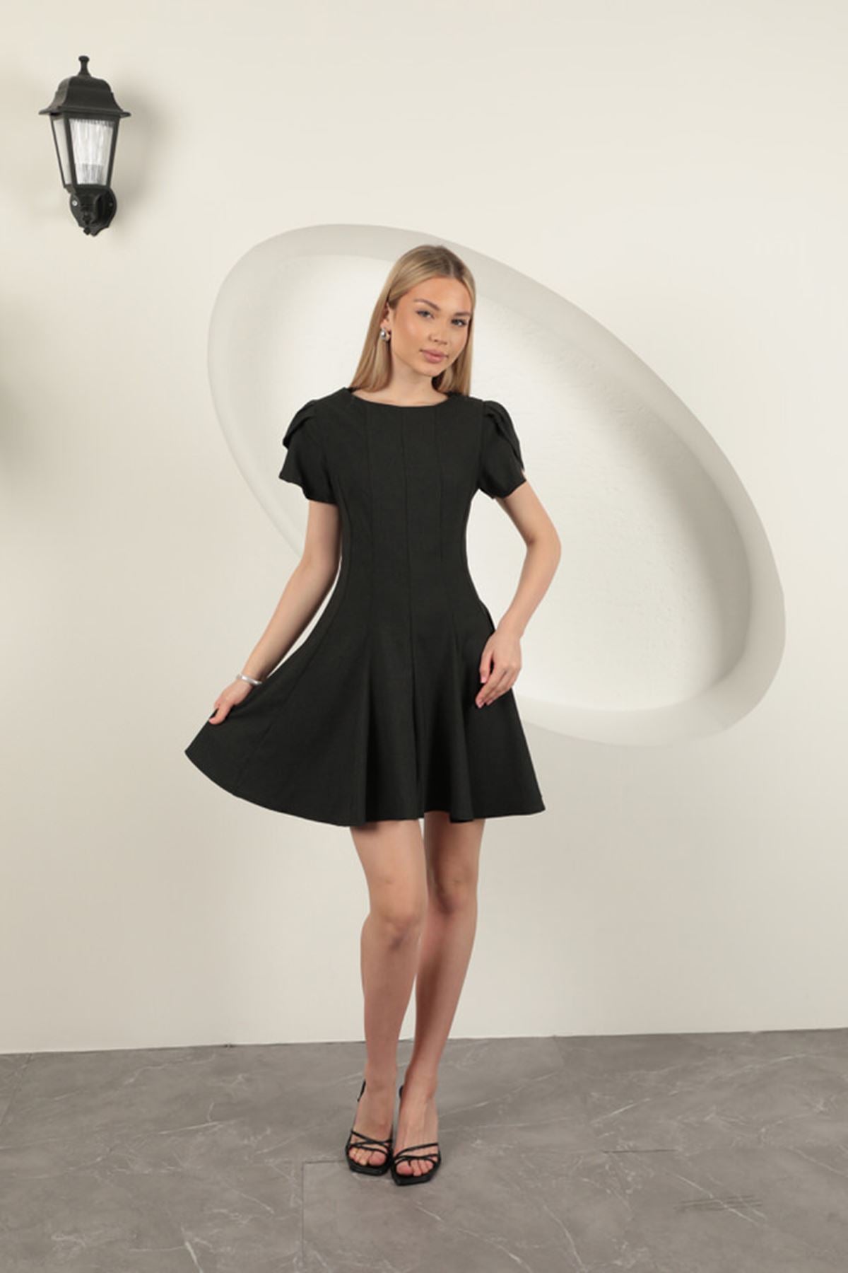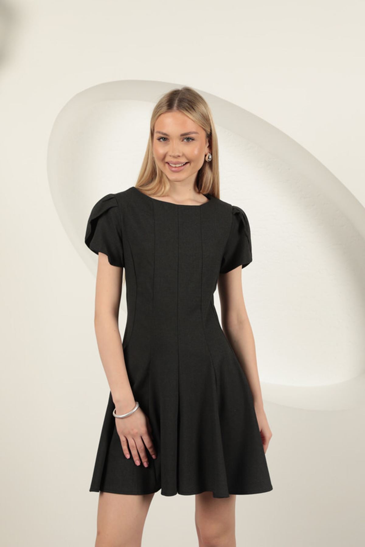 Diger81980Poliviskon Kumaş Mini Elbise-Antrasit