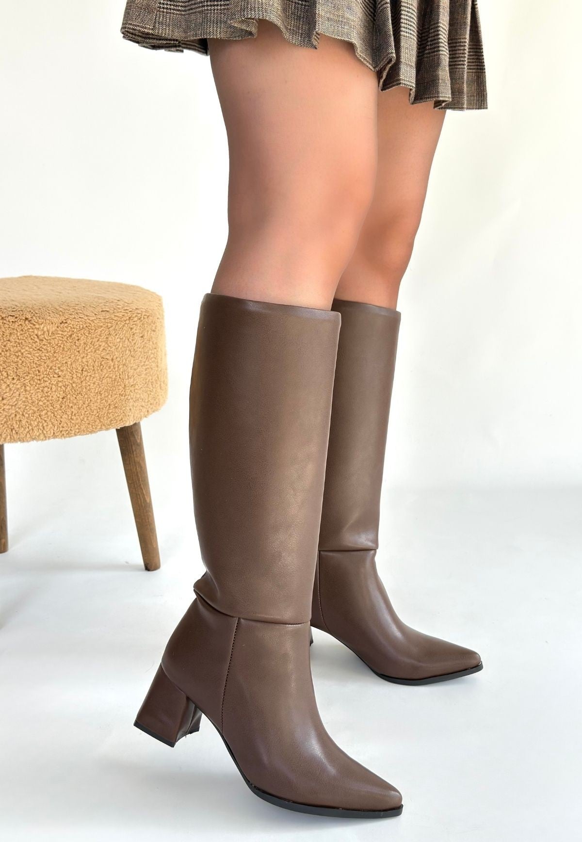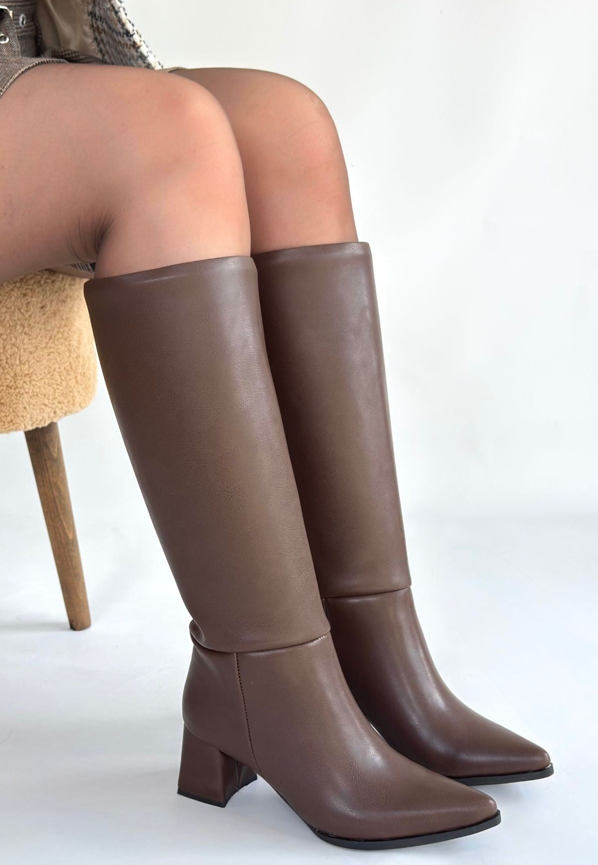 Roksa Acı Kahvei Cilt Topuklu Çizme