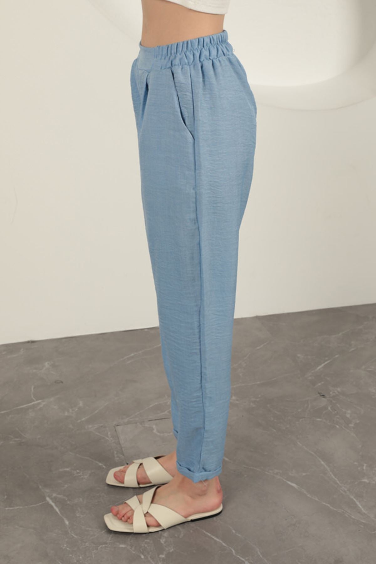 Diger82003Sofia Keten Duble Paça Kadın Pantolon-Mavi