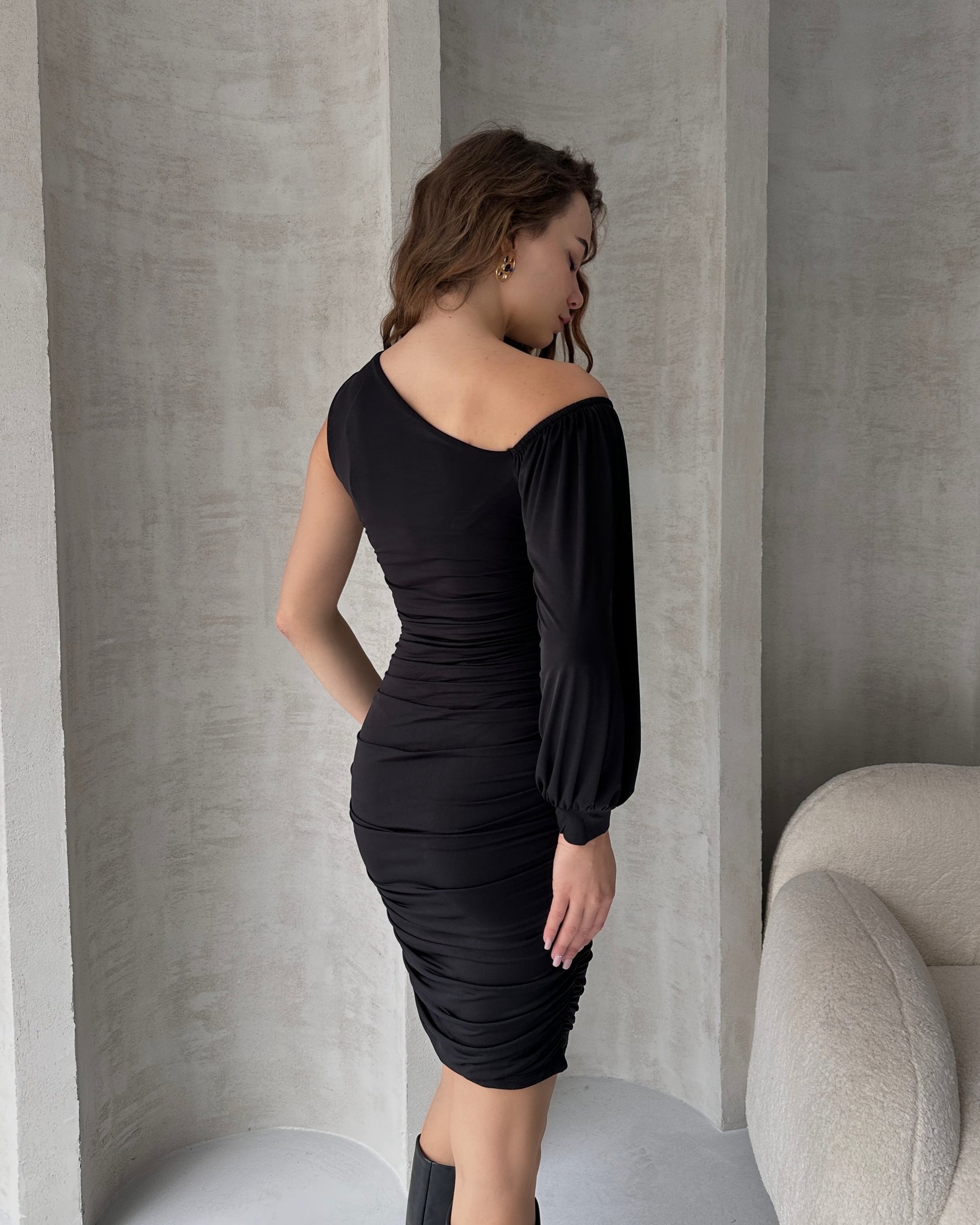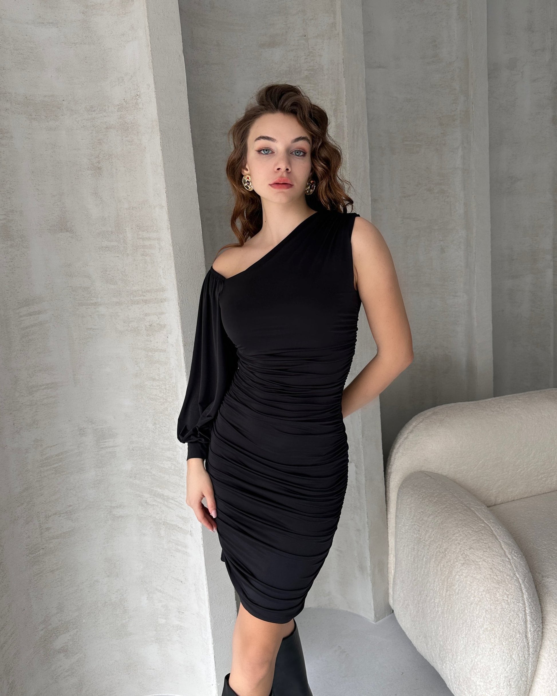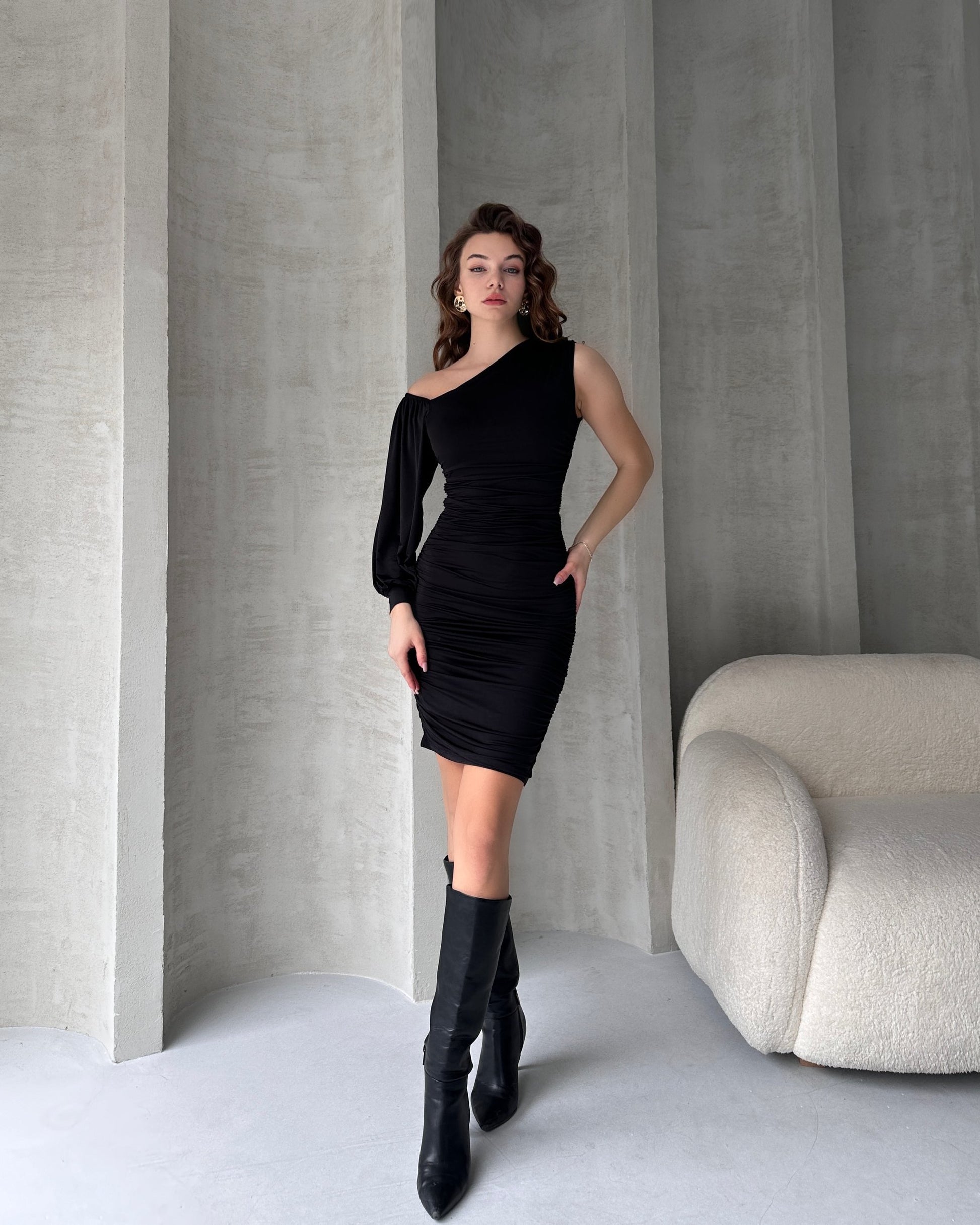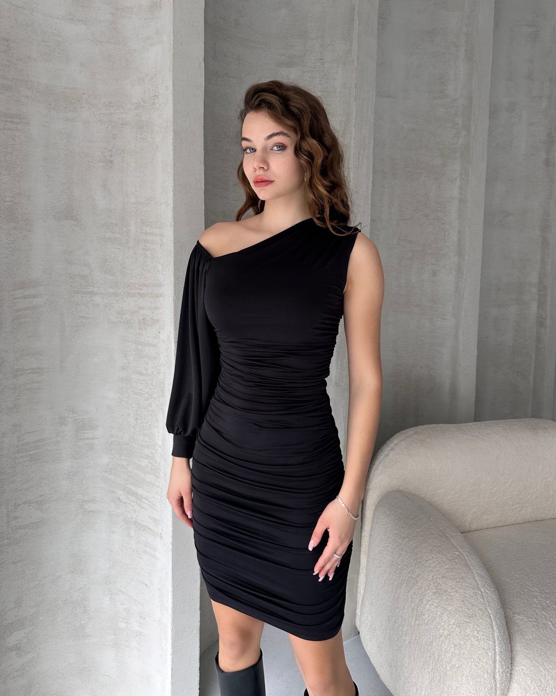 Diger82368Tek Omuz Drapeli Mini Elbise