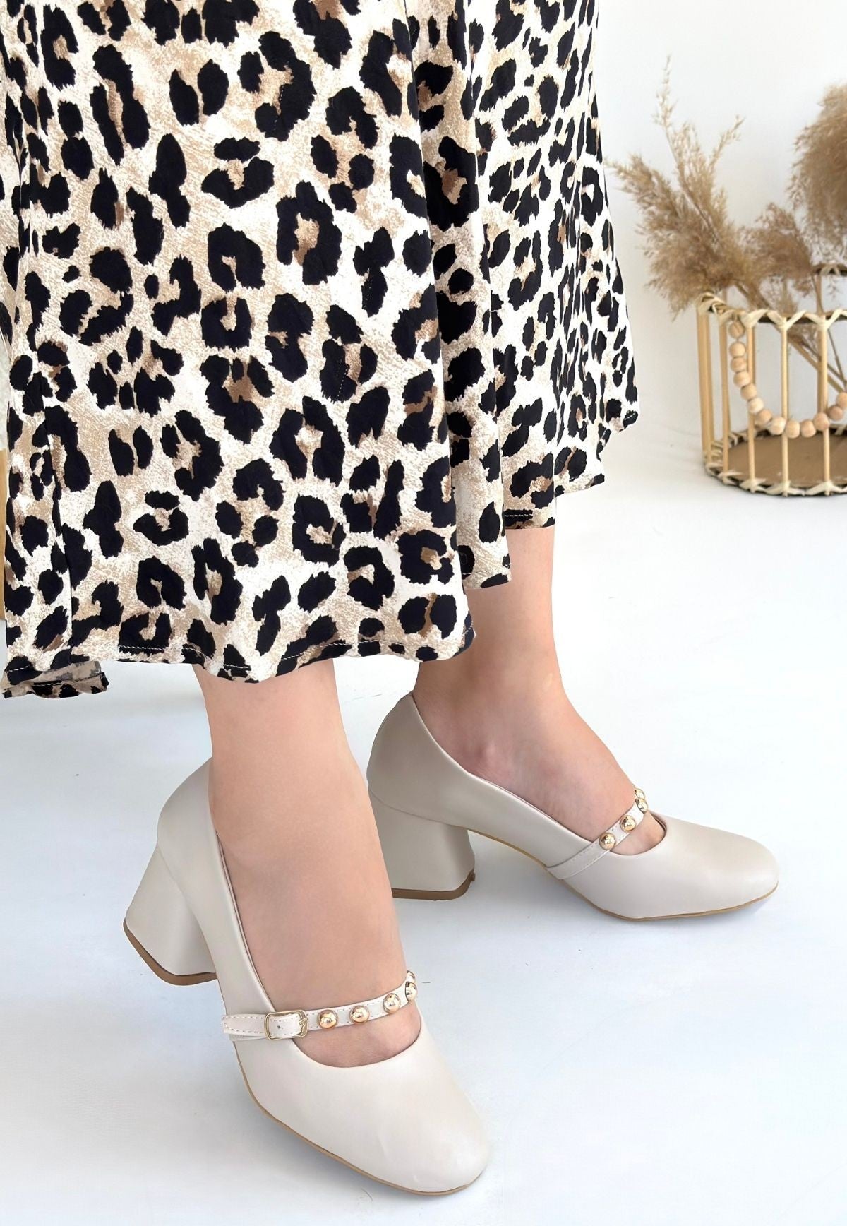 Diğer86632Tino Bej Cilt Topuklu Ayakkabı