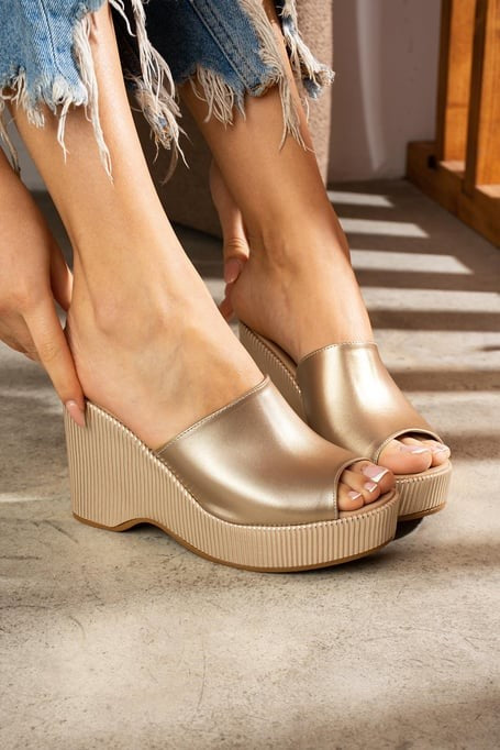 Tlay Bej Cilt Dolgu Topuk Terlik
