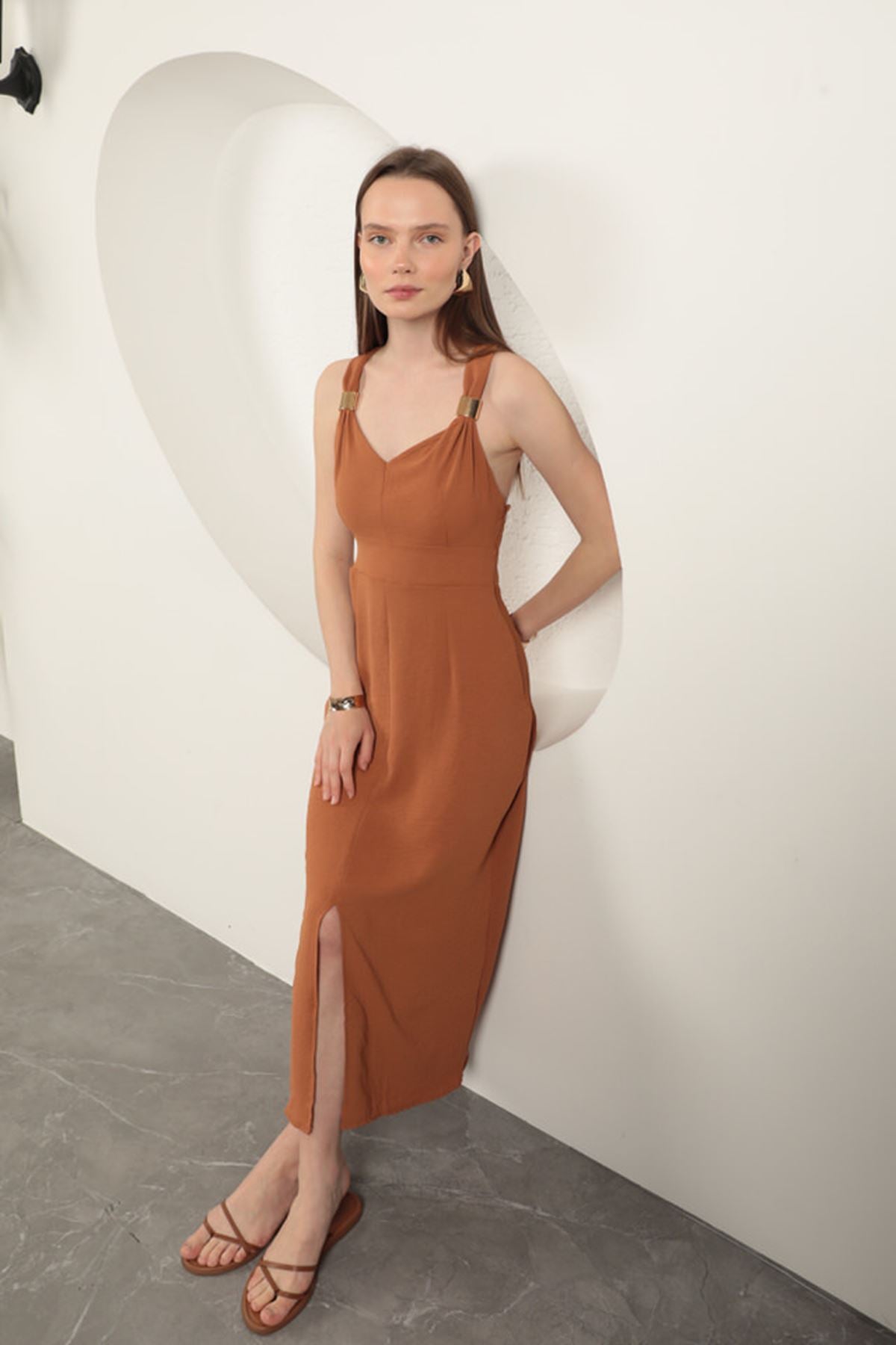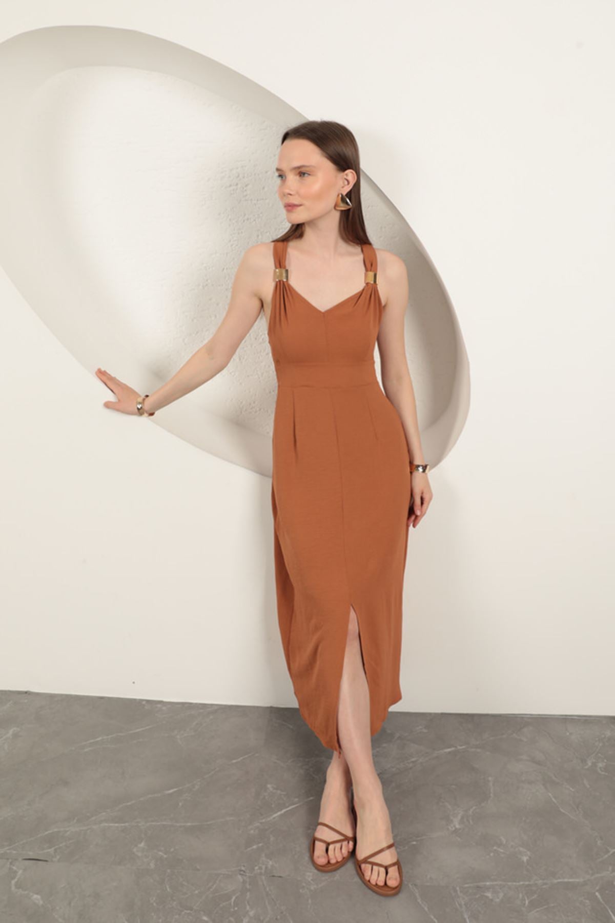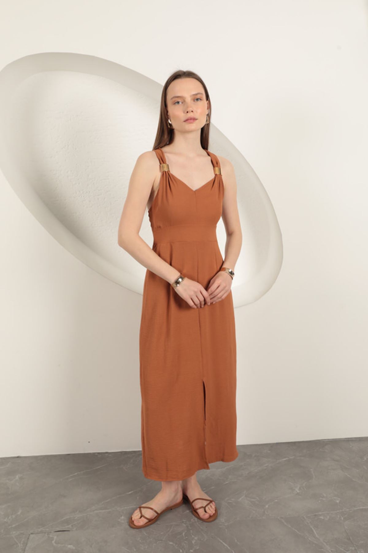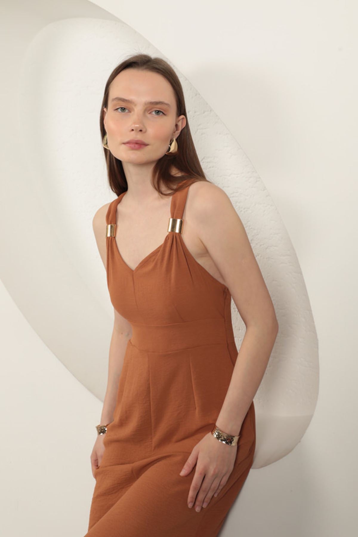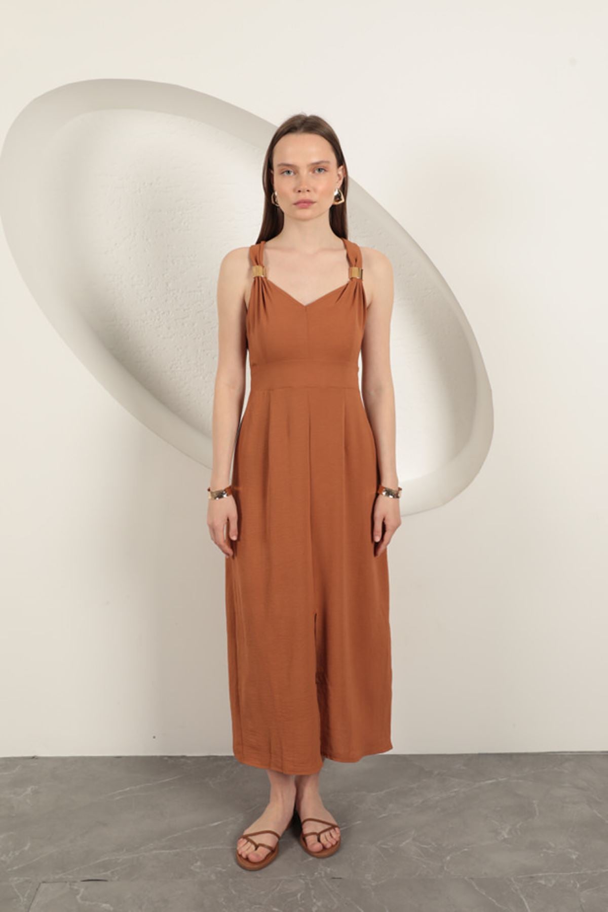 Diger83051Toka Detaylı Askılı Elbise-Kahve