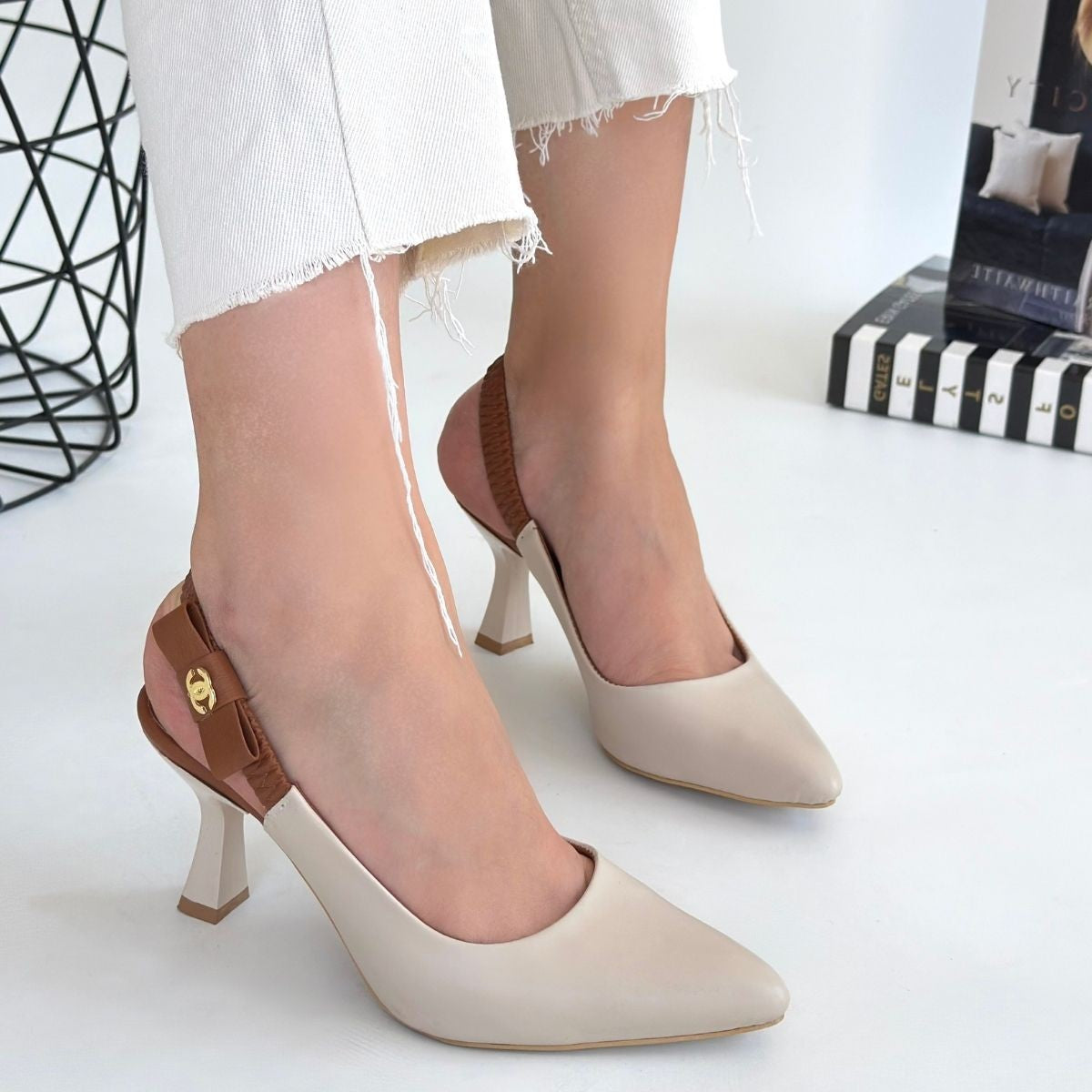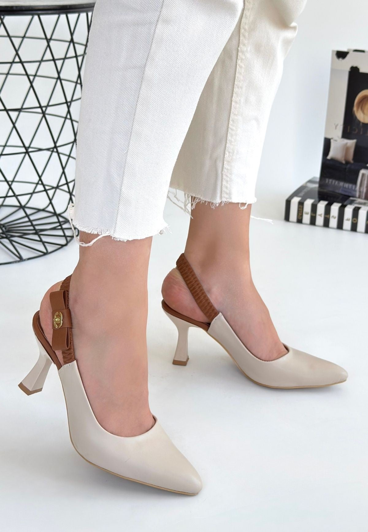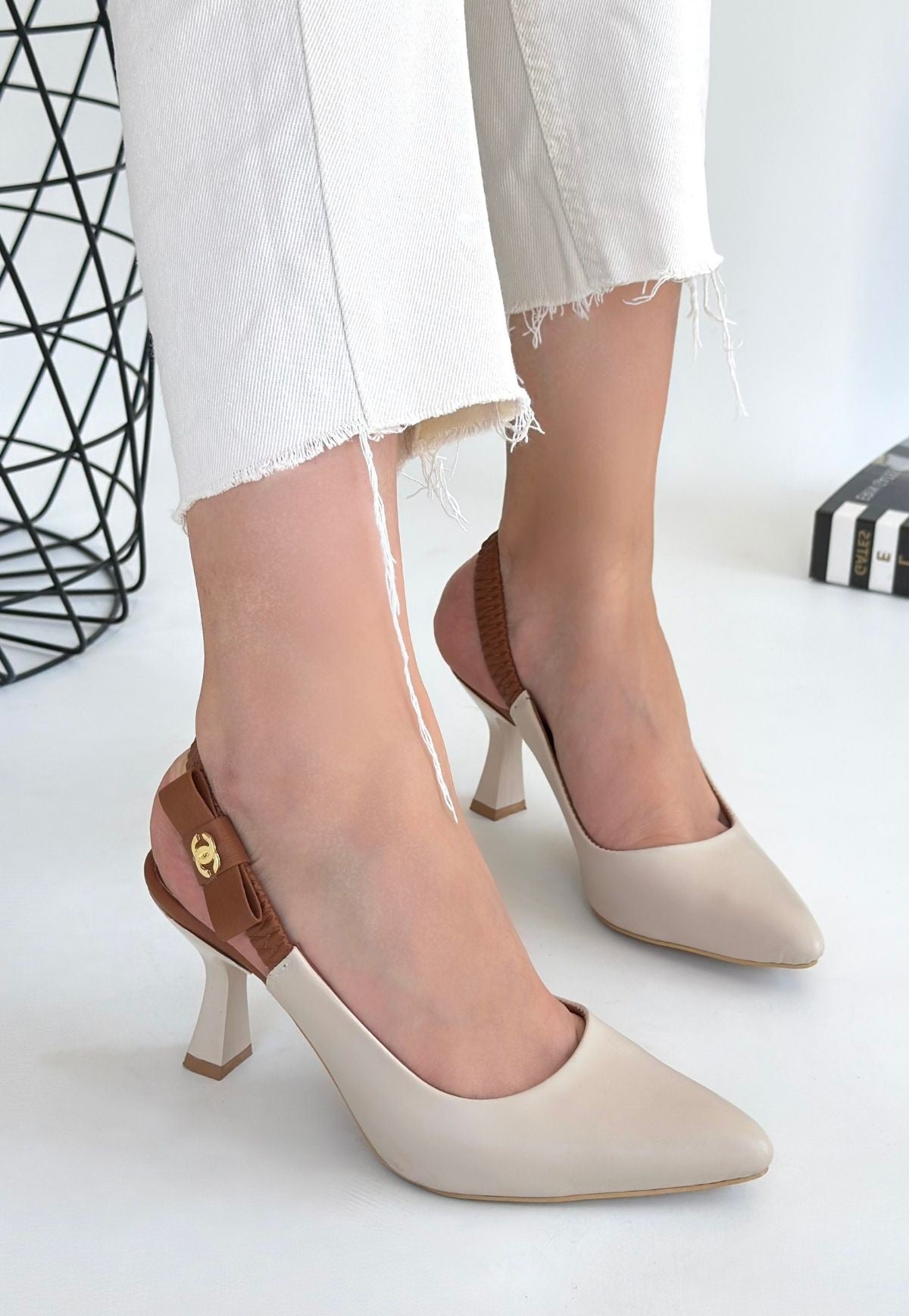 Diğer87122Toran Bej Cilt Topuklu Ayakkabı
