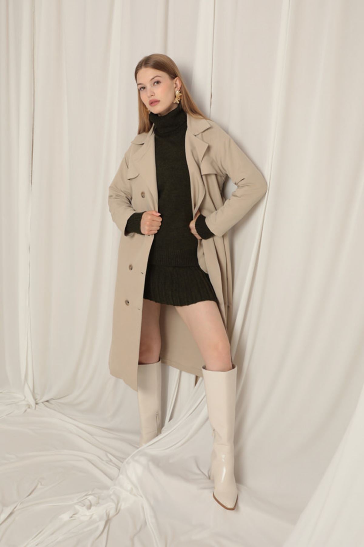 Torino Kumaş Sıvı Geçirmez Maxi Boy Kadın Taş Trençkot