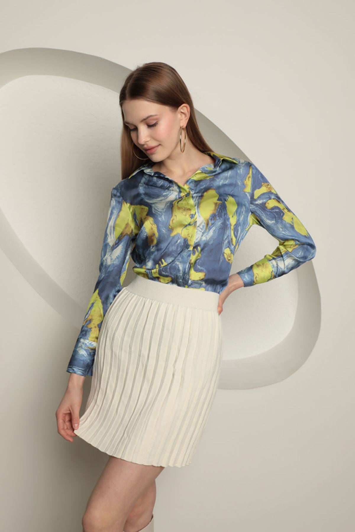 Diger66140Triko Kadın Pileli Etek-Ekru